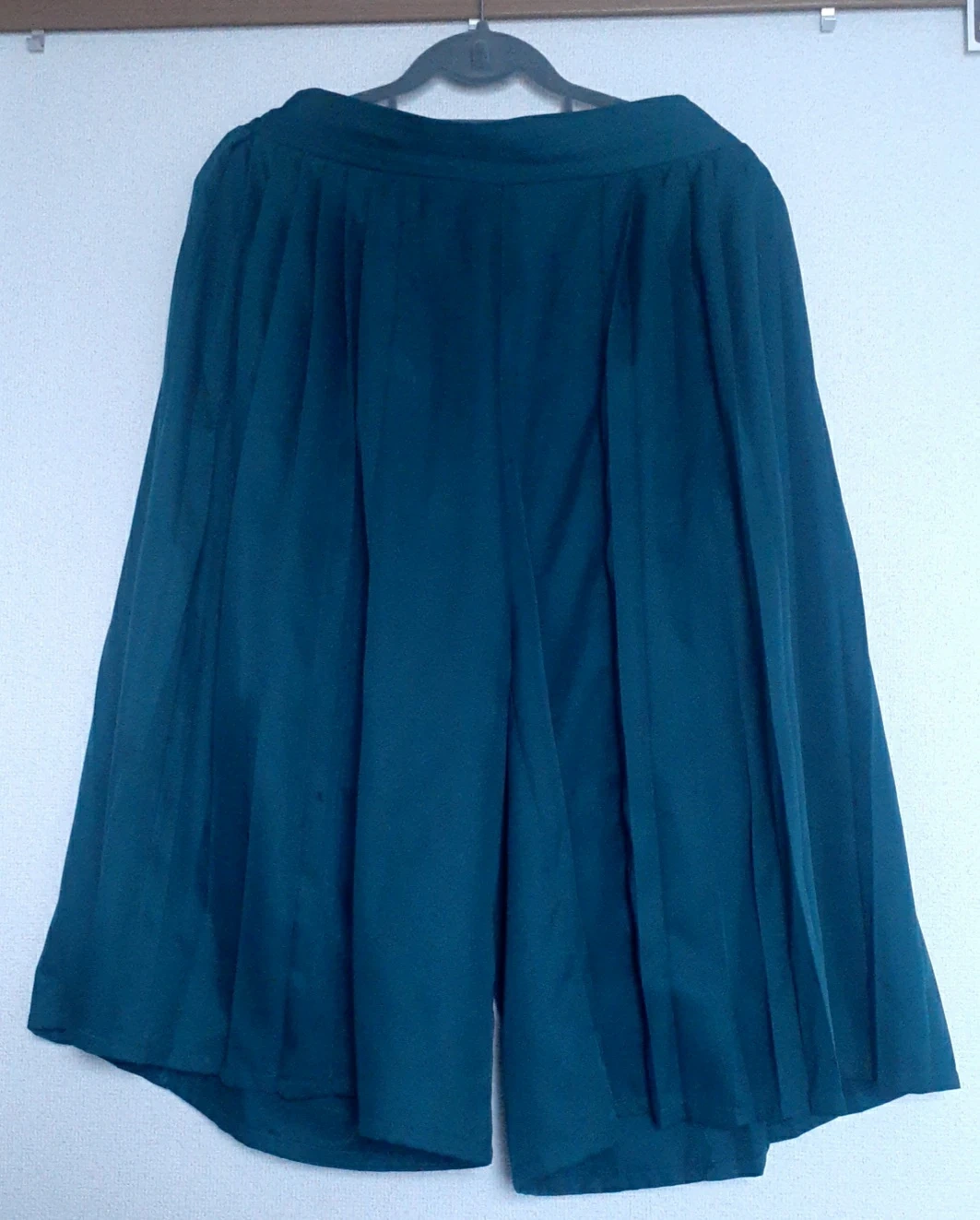 POUDOUDOU(プードゥドゥ)のフレアプリーツキュロットスカートです。 (☆女性の方限定☆価格交渉応じます🙆🏻) ・カラー:グリーン ・サイズ:M ・素材:ポリエステル100% ・ウエスト:64cm ・ヒップ:91cm ・手洗い可能 ・日本製 素人採寸で丈は77cm程度です。 ウエストは後ろゴムです。Mサイズにしては大きめではあります。 普通に立っているとミモレ〜ロングスカートに見えますが、実際はキュロットなので動きやすいです。 生地も柔らかく着やすいし、プリーツですがニュアンス程度でシワも気にしなくていい感じです。 何度かは着用しているため、中古品であることはご了承ください。 価格交渉、受け渡し場所相談などお気軽にご連絡ください🙆🏻