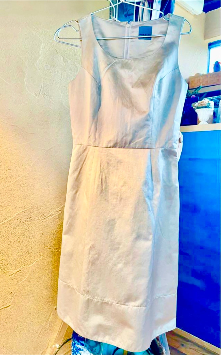・ブランド:PREMISE for theory luxe セオリー ・膝丈ワンピース ・カラー:シャンペンゴールド ・裏地あり ・後ろファスナー ・サイズ 38 セオリー PREMISEの上品でシンプルでクールな夏のワンピです。素材はポリ、麻、綿混合。 裏地がついています。 光沢のある、高級感を感じる生地です。 裾から10cmほど上に、ステッチで切替があります。 実寸は、肩幅36cm.胸囲86cm.ウエスト68cm. 着丈98cmです。 お受け渡しは、千歳烏山駅、粕谷図書館、千歳船橋駅、三軒茶屋駅など、いくつかご相談にのります。