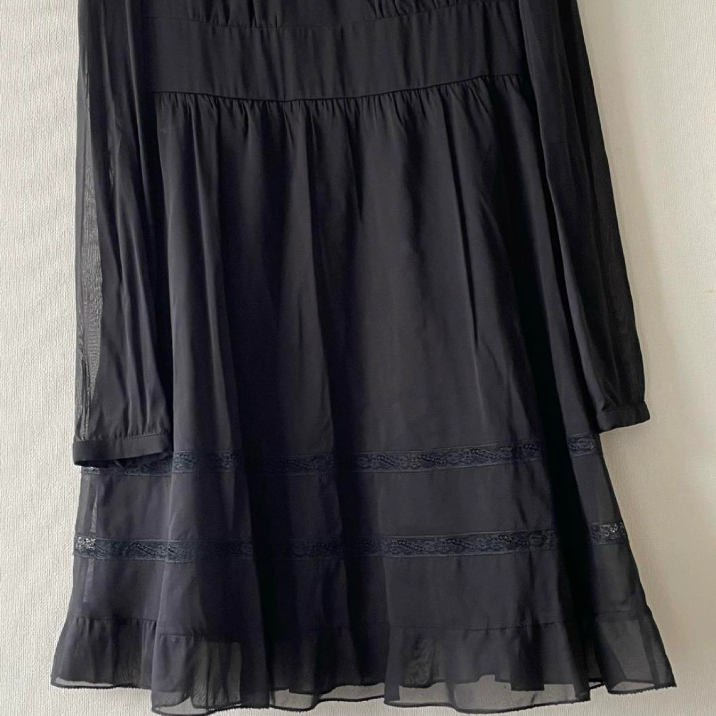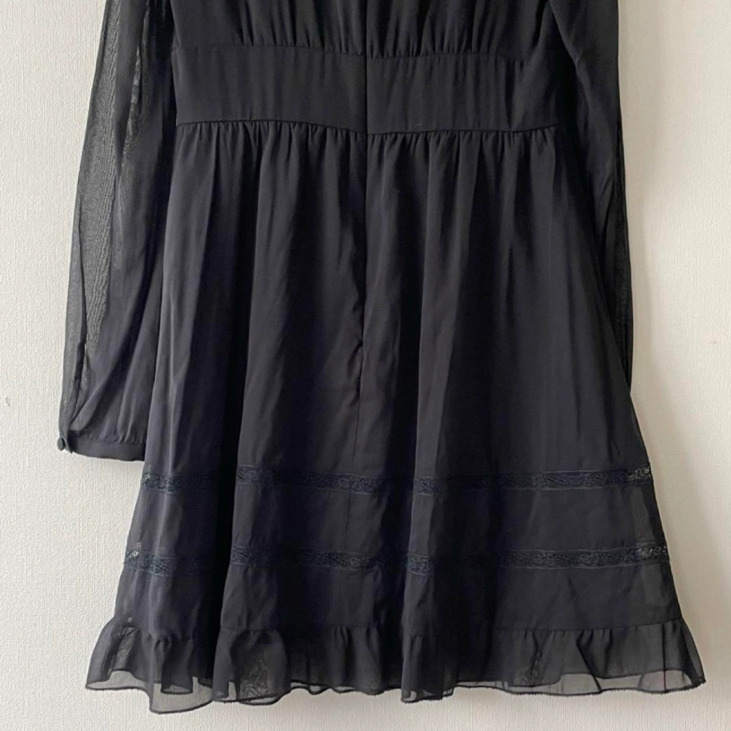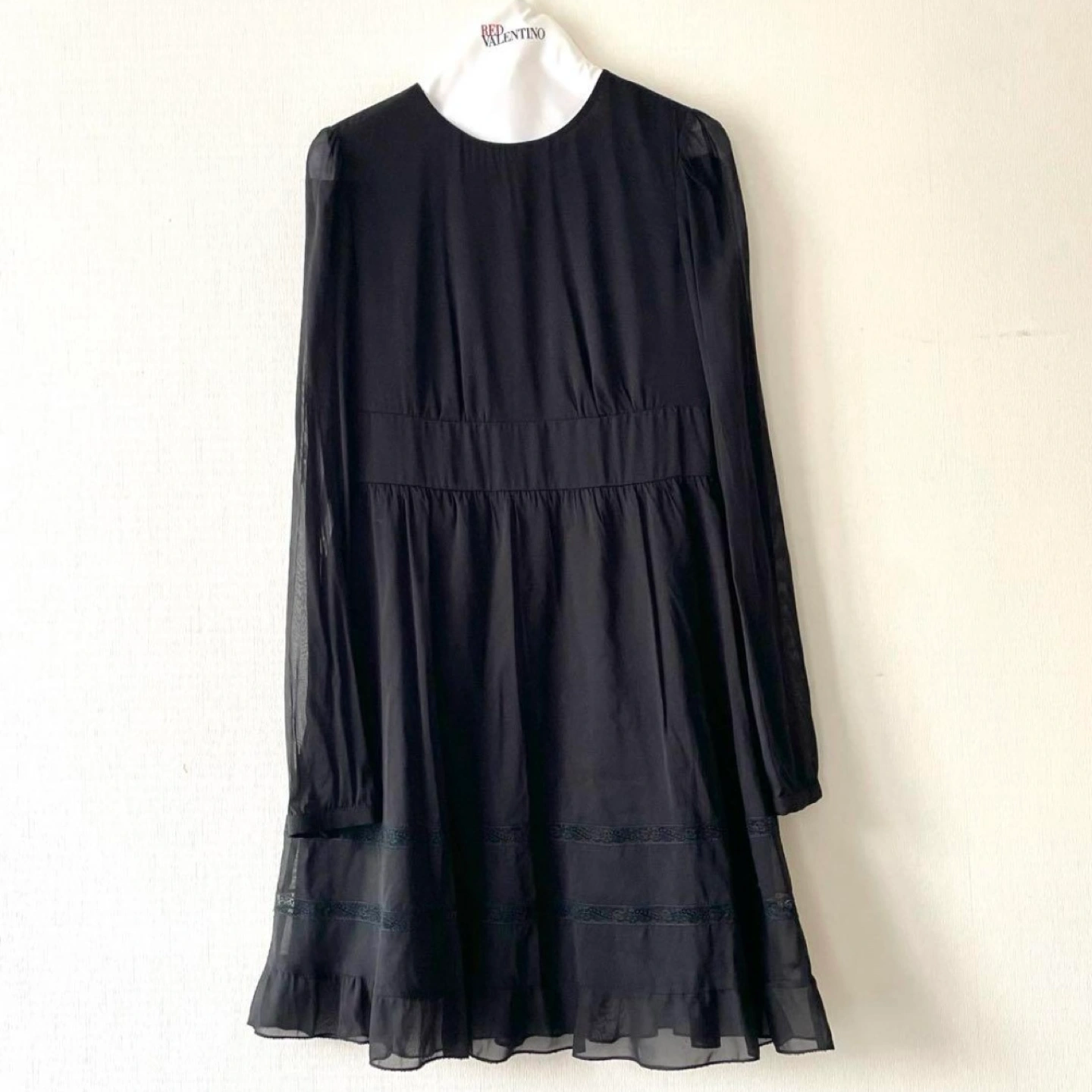 【美品】RED VALENTINO レッドヴァレンティノ シルク ストレッチ シアー レース切替ワンピース サイズ40 S〜M バイウエスト シルク91%、ポリウレタン9% 袖はシアー 裾はレース切替のティアード 美しいシルエットです 数回着用 着丈 84cm 肩幅 35cm 身幅 41cm 袖丈 64cm 特に目立つキズや汚れはございませんが、 ユーズド品であることをご理解お願いいたします。 レッドヴァレンティノ ブラックドレス ブラックワンピース フォーマルドレス 発表会 パーティドレス おでかけ着 ハイウェスト