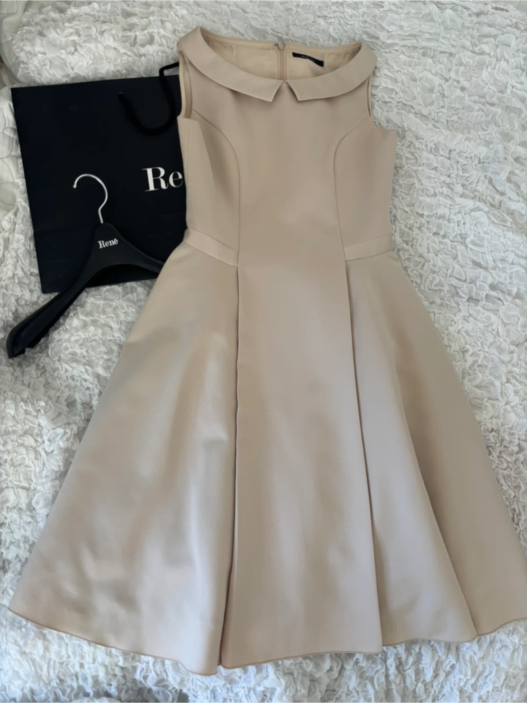 ルネ ベーシック ライトベージュのワンピース 表記サイズ36(Sサイズ程度) 着丈約95cm 身幅約43cm 両サイドにポケット有り 裏地付き 素材は画像でご確認下さい。 目立つ汚れやシミ、毛羽立ちなどのない品だと思います。 購入してからあまり着る機会に恵まれず長い事しまい込んでおりました。 着丈は良いけどカラー(色)とカラー(襟)デザインが自分には似合わなくなってしまった気がするので出品します。 ハンガーとショッパーもまだありましたのでお付けします。 あくまでも中古品である事をご了承ください。