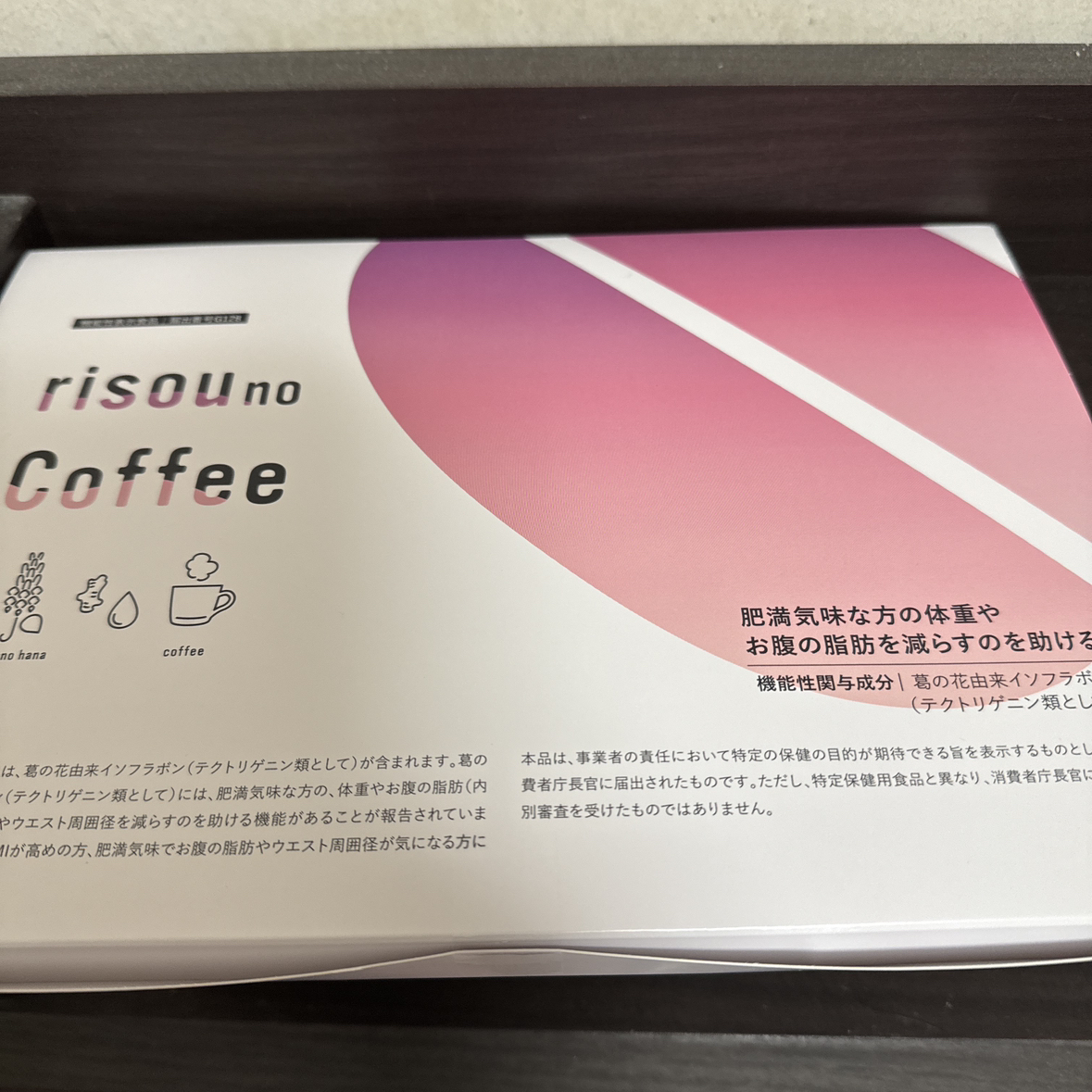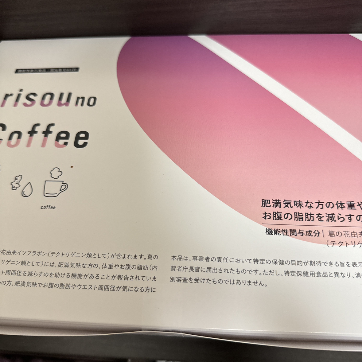⭐︎ risou no coffee⭐︎ 肥満気味な方の体重や お腹の脂肪を減らすのを助ける。 届け表示には、葛の花由来イソフラボン (テクトリゲニン類として)には、肥満気味な 方の、体重やお腹の脂肪(内臓皮下脂肪)や ウエスト周囲経を減らす助ける昨日がある事が 報告されてます。 肥満気味な方、BMIが高めな方、肥満気味で お腹の脂肪やウエスト周囲径が気になる方に 適した商品です^_^ 余ってしまい出品致します。 個人の感想としましては、牛乳や豆乳等いれて 飲んでます。 粉なので、アイスコーヒーにしても 美味しく飲めました。 1日一杯飲むだけ。 ⭐︎理想のカラダを手に入れる機能性コーヒ〜⭐︎ 自宅保管に付き気になる方は、ご遠慮ください。 宜しくお願いします。