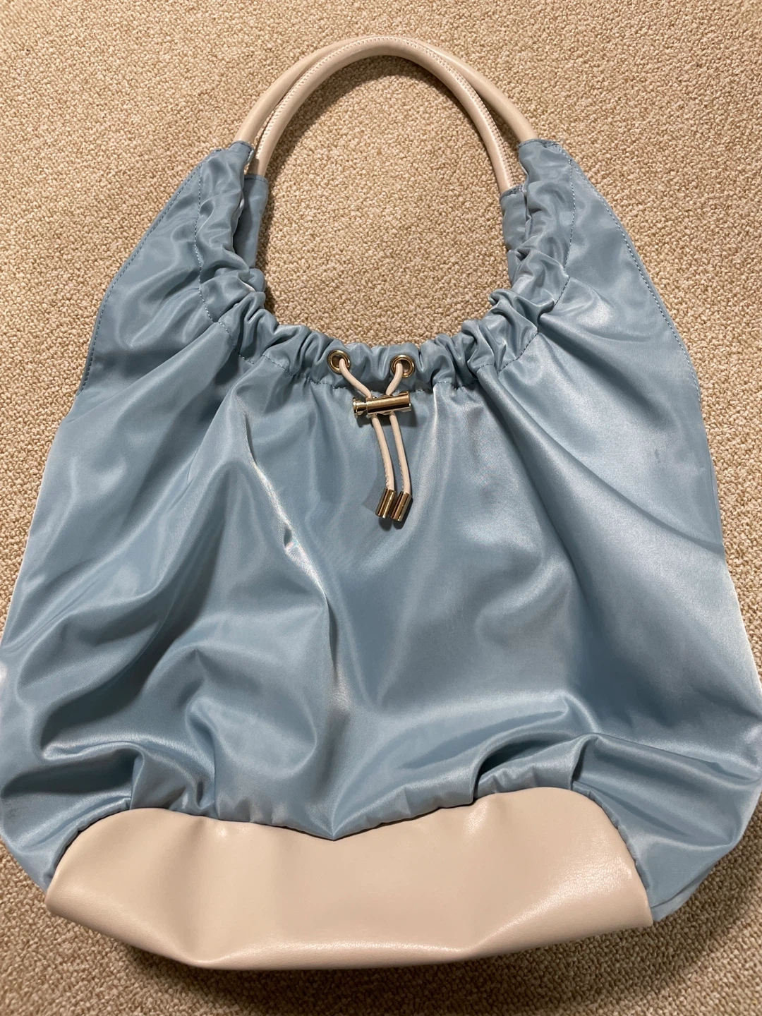 ROPE' PICNIC PASSAGE 【撥水加工】ドロストリングギャザートート ・色:水色 ・持ち手:ベージュ ・内ポケットあり サイズ F/幅41 | 高さ25 | マチ13.5 | 持ち手55 | 重量(g)305 1,2回のみ使用、美品です 日によって明大前駅なども可能です