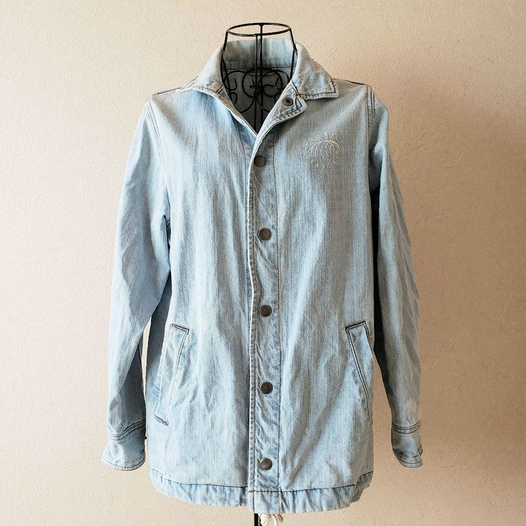 - ブランド: ROXY - 素材: デニム - 色: ライトブルー - デザイン: ボタン付き、襟付き - スタイル: ロングジャケット - ポケット: サイドポケット付き ◎着丈67 ◎横幅50 ◎肩幅38 ◎袖丈58 ≪平置き寸法≫ ※素人採寸になります。 若干の誤差は、ご了承ください。 ◎少し大きめに出来ている為 とても着やすかったです。 2年程春などに着用していました 洗濯をし自宅保管をしていた為 7枚目の写真左腕袖部分が色落ちしています ◎ペットいません ◎喫煙者いません デニムカラー...ライトブルー ご覧いただきありがとうございます。