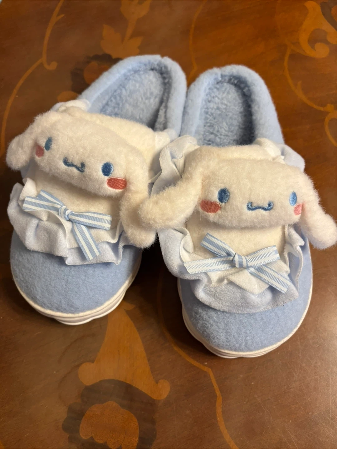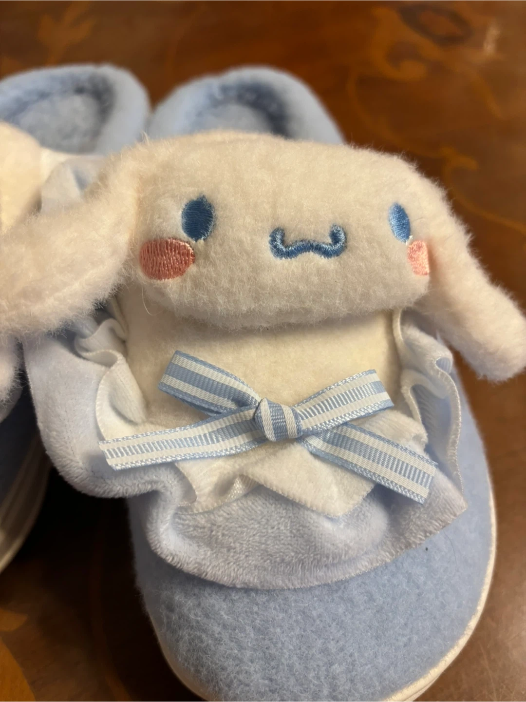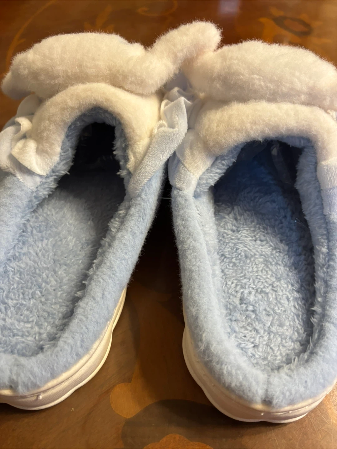 ⭐︎はじめてのキャロットの出品で不慣れな所はありますがよろしくお願いします。 サンリオのシナモンモコモコスリッパです。 ・色:水色 ・サイズ:40-41ですが、24.0位の方がベスト だと思います。モコモコでとても暖かそうです。 孫達に購入したのですが、残念ですがもうサンリオ好きはなくなったようでした。 シナモンは同じサイズてわ2足あります。姉妹、親子でいかがですか?価格は1足分となりますのでご注意下さい。 ・状態:未使用でまだ両方がつながっている状態です。 新品ですが自宅保管品であることをご了承ください。 お取引は日中が基本的希望です。 日中であれば、指定場所以外の場所でも可能な場合もございますのでご相談下さい。