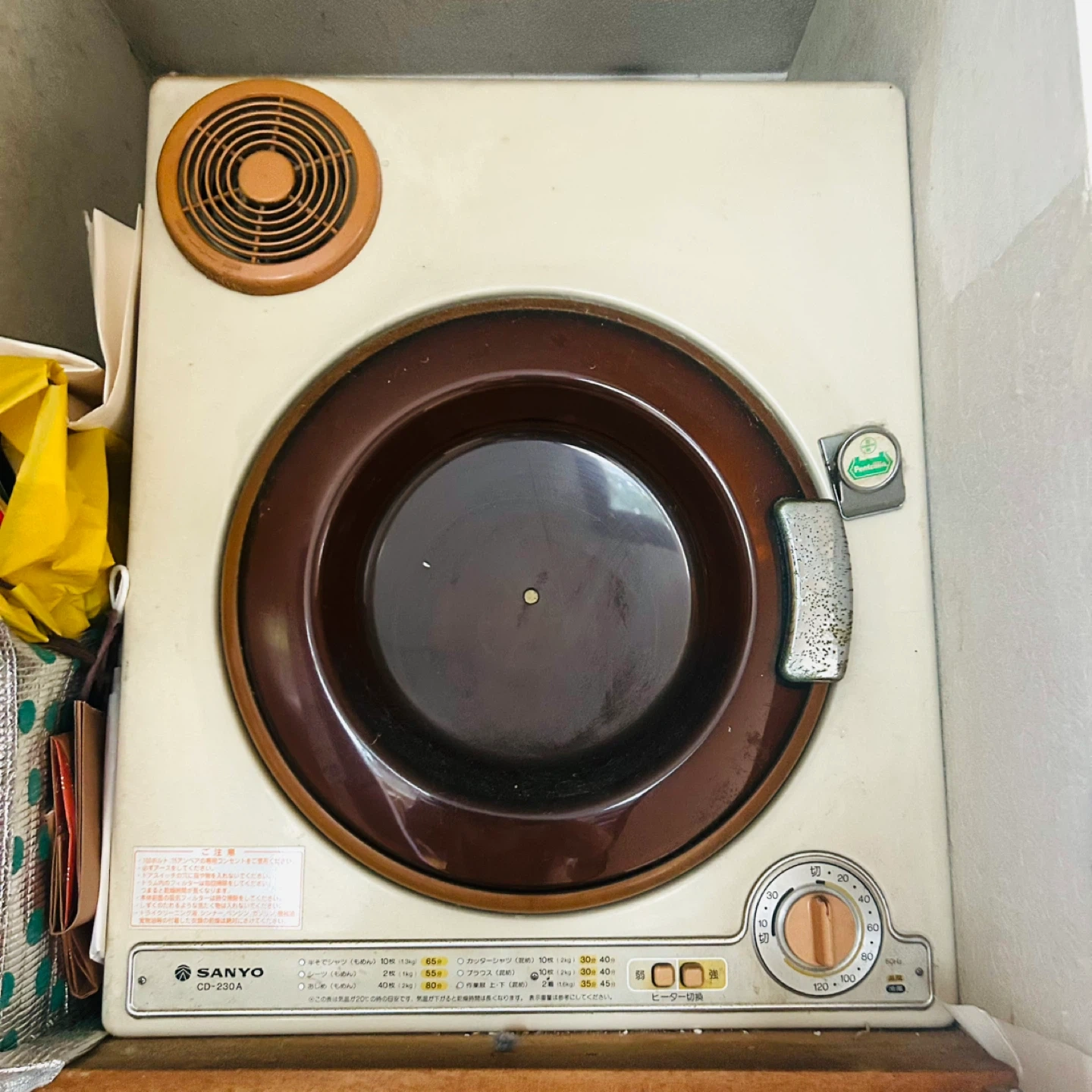つい先日まで使用していた衣類乾燥機です。 かなり古いものですが一度も故障することなく何十年も使っていました。 自宅を畳むため、廃棄処分しようかと思いましたが、昭和レトロの貴重なデザインと今は無きSANYOということもあり、欲しい方いましたらお譲りします。 かなり重いので台車や大人2人で来ることをお勧めします。 電源入れれば乾燥機として使えますが、今販売している家電と比べると電気代を使うと思います。比べていないので具体的にはわかりませんが…。 普段のインテリア等にお使いいただいても良いかもしれません。 商品名:衣類乾燥機 型式:CD-230A メーカー:SANYO サンヨー 縦72cm 横59cm 奥行き43cm ◆状態◆ 動作確認済みです。 ※中古品現 状渡しのため、‼️キズ、汚れ‼️などがございますので、予めご了承ください。 ※細かくお気になさる方はご購入をご遠慮下さい。 ノーリターン、ノークレームでお願い致します! m(._.)m SANYO サンヨー 家庭用 電化製品 衣類乾燥機 熱風 レトロ アンティーク