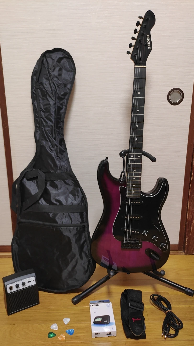 1. Selder エレキギター 2. アンプ Photogenic PG-01 3. ソフトケース 4. ストラップ 5. スタンド 6. ピック 5枚 7. チューナー 8. ケーブル