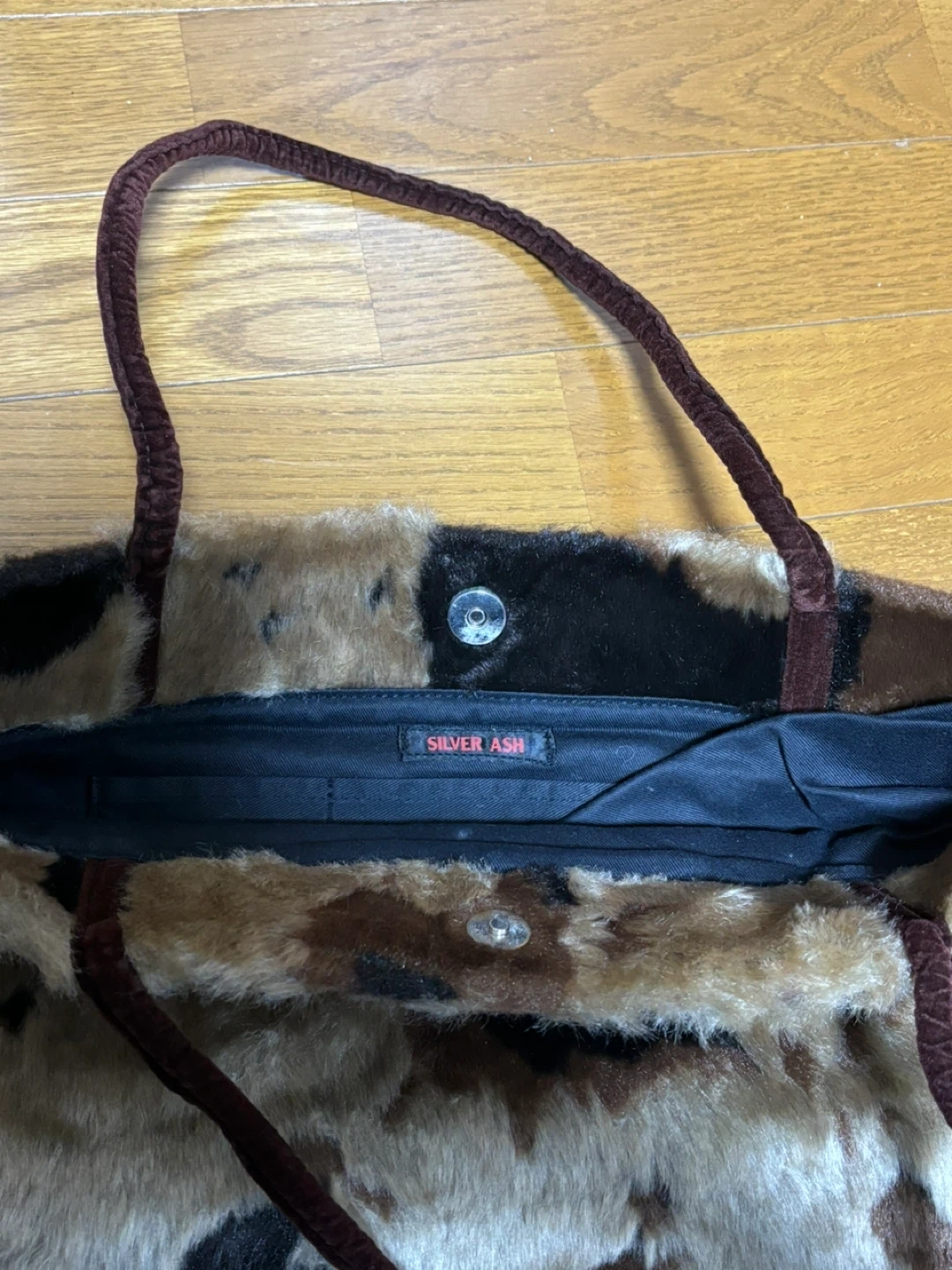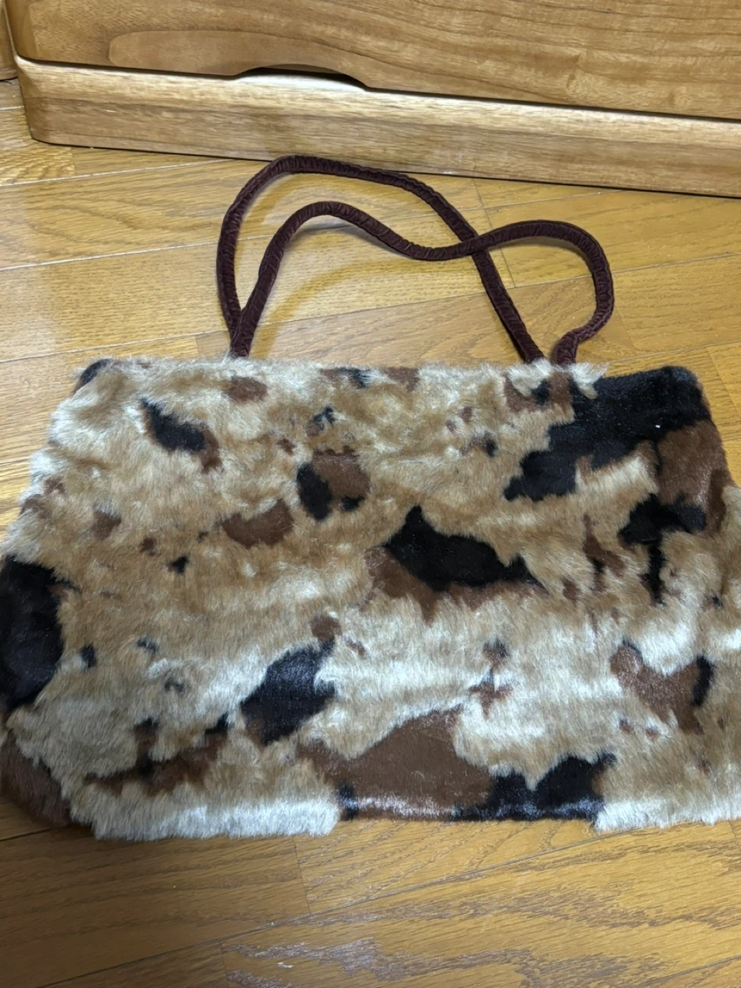イタリア製 黒色フェルトバッグ ファー飾り付き
