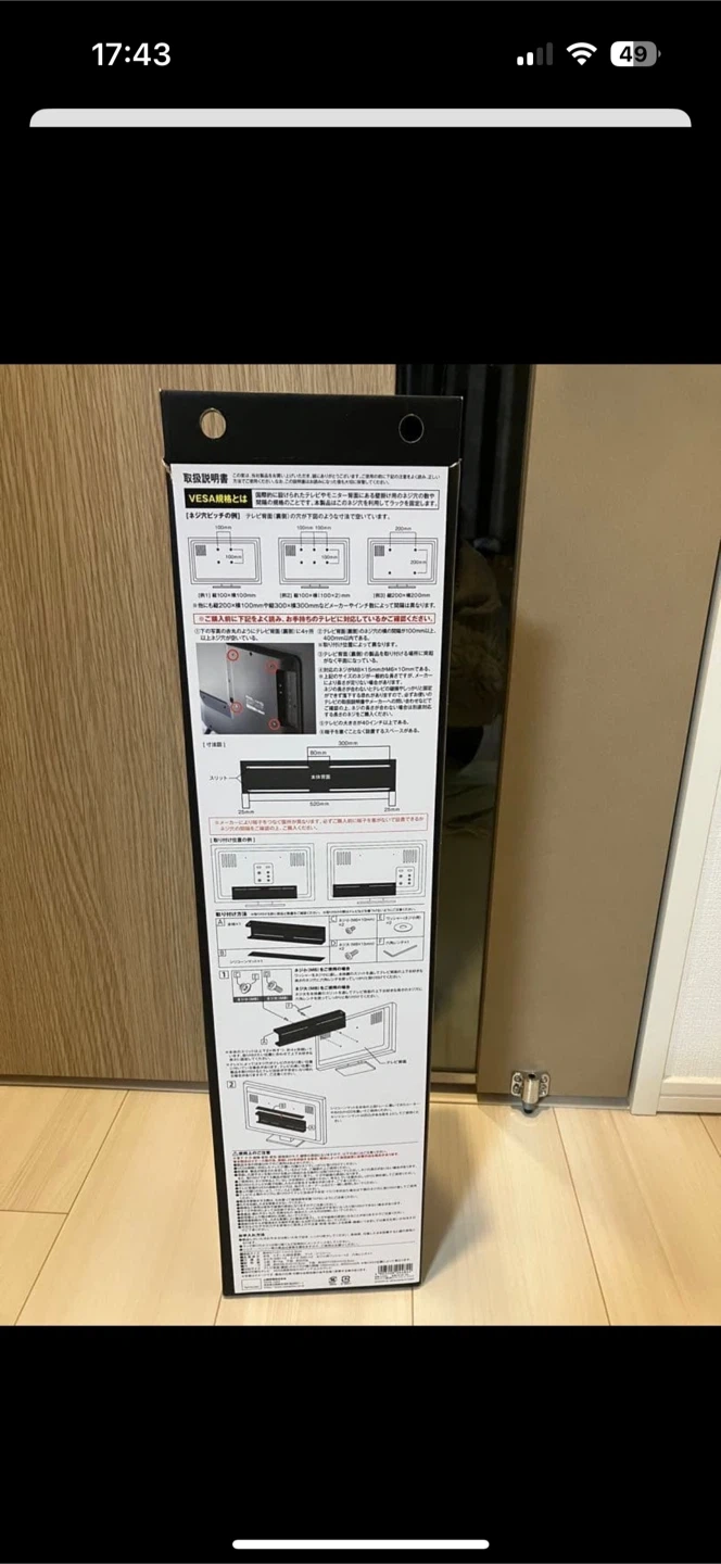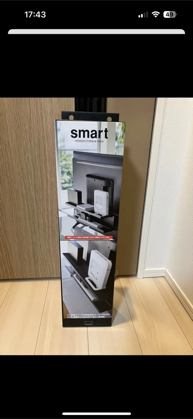 開封しましたが結局使用しませんでした。 どなたか使っていただけると助かります(╹◡╹) なのでほぼ未使用品です。 箱の角が痛んでいます。 セブンイレブン八王子散田1丁目店での引き渡しとなります。 ご質問ございましたらお気軽にお問い合わせ下さい。 商品の詳細は下記か、検索かけてみてください(^-^) 山崎実業 テレビ裏収納ラック スマート smart ブラック テレビ裏スペースを有効活用! ルーターや外付けHDD、電源タップなどをすっきり一括収納。 下段には電源タップを置くことができるので配線もすっきりとまとめる事ができます。 VESA規格対応。 テレビ裏のネジ穴にねじ込んで固定するだけなので簡単に設置できます。 テレビ裏で隠して収納できるのでテレビ周りをすっきりと整理整頓する事ができます。 ■ 商品サイズ 約57×11×12.5cm ■ 商品重量(g) 約1800g ■ 内寸サイズ 上段:約W56.5×D10.5cm 下段:約W57×D8×H10.5cm ■ 対応サイズ テレビ背面(裏面)のネジ穴の横の間隔:100mm以上、400mm以内 ※取り付け位置によって異なります。 VESA規格対応の40インチ以上のテレビに対応 ■ 耐荷重 上段:約1kg 下段:約500g ■ 付属品 ネジ大(M8)×2 ネジ小(M6)×2 ネジ小用ワッシャー×2 六角レンチ×1 ■ 品質表示 本体:スチール(粉体塗装) マット:シリコーン 【メーカー・ブランド】 山崎実業 / ヤマザキ / やまざき Yamazaki 種類···ケーブルボックス テレビ台の種類···壁面収納