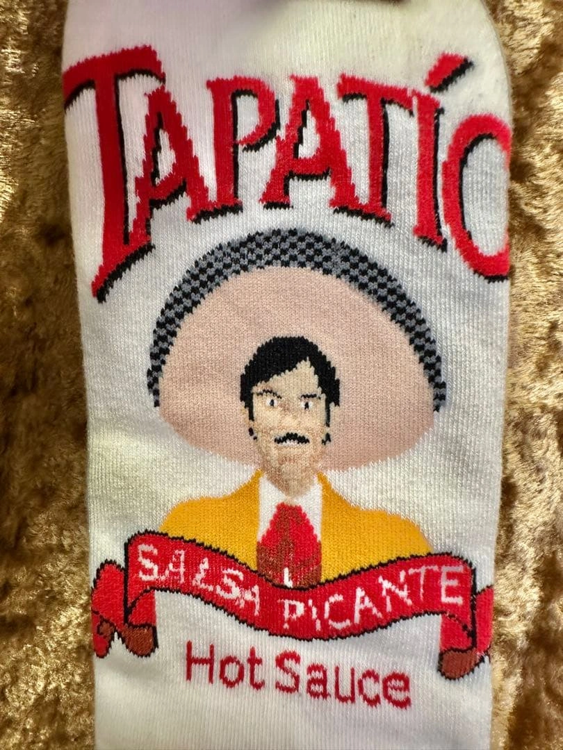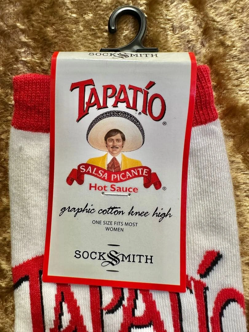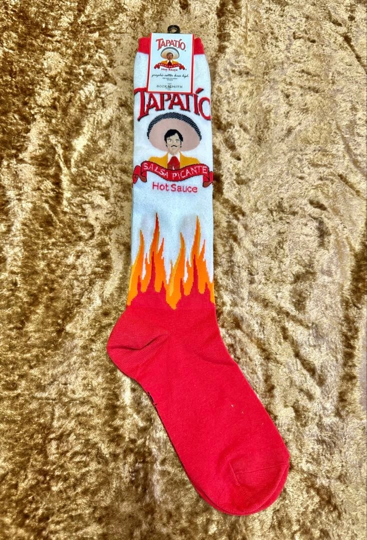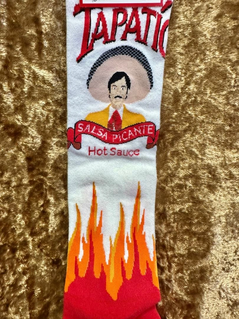あたたかさ海外輸入商品です。 Tapatíoのグラフィックデザインが特徴の膝上丈ソックスです。 - ブランド: SOCKSMITH - スタイル: グラフィックソックス(メキシカン サルサ ホットソース) - サイズ: ワンサイズ(女性向け) - 素材: コットン - モデル名: Salsa Picante Hot Sauce ご覧いただきありがとうございます。 ご希望の方はお気軽にご連絡ください。