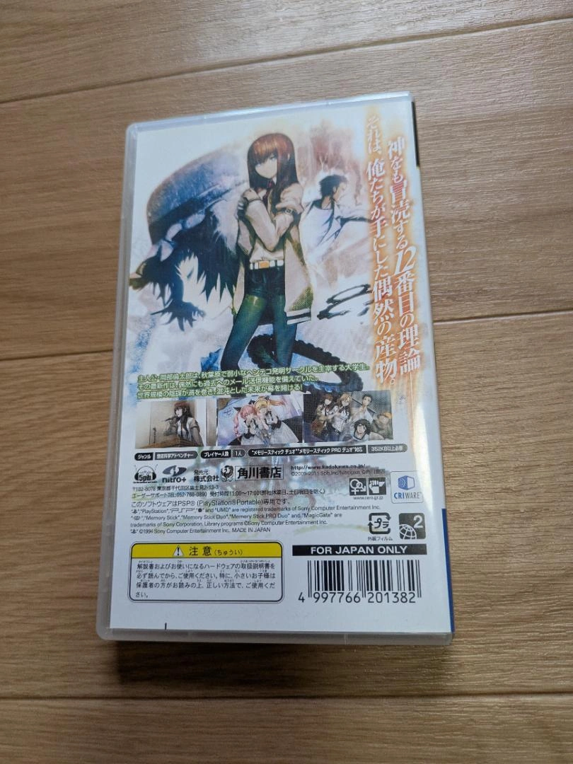 PSP用のSteins;Gate、CERO Cレーティング、UMDディスク付き。 - タイトル: Steins;Gate - プラットフォーム: PSP - CEROレーティング: C - ディスクタイプ: UMD - 日本専用: FOR JAPAN ONLY ほとんど遊ぶ時間がないので出品します。最初にPSP本体は付きません。ご希望の方はお気軽にご連絡ください。