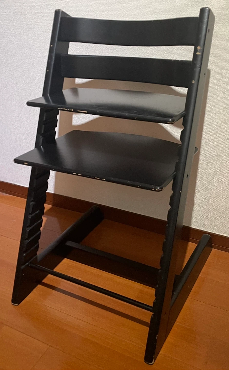 STOKKE ストッケ ハイチェア トリップトラップ ブラックです。 コンディション 使用には問題ありませんが、全体にキズ・汚れ・塗装剥げ・塗装ヒビ割れ・擦れ跡等が多数ございます。写真を拡大して状態をご判断いただくことをおすすめ致します。また写真に写りきらないキズや汚れ等も多数ございますのでご了承下さい。 メーカー : ストッケ 種別 : ハイチェア トリップトラップ TRIPP TRAPP 色 : ブラック シリアルナンバー:4