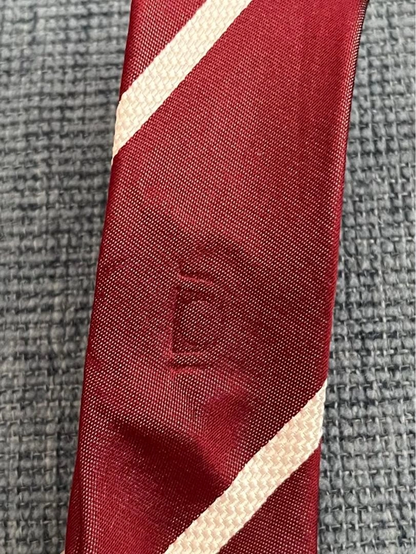 数年前にSUITS SELECTで購入し使用していました。 一部ピン跡があります。ご了承の上、お取引をお願いします。 - 色: ワイン、ボルドー、バーガンディ、えんじ色、白、ホワイト - デザイン: ストライプ - 素材: シルク100% - サイズ: 幅:約6.5cm(最大),約3cm(最小)、長さ:約156cm ご希望の方はお気軽にご連絡ください。