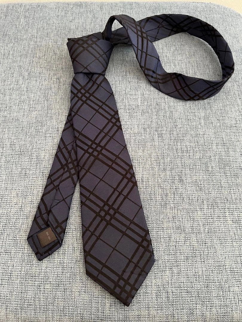 【TEON】ベージュ系ストライプ柄・細幅シルクネクタイ