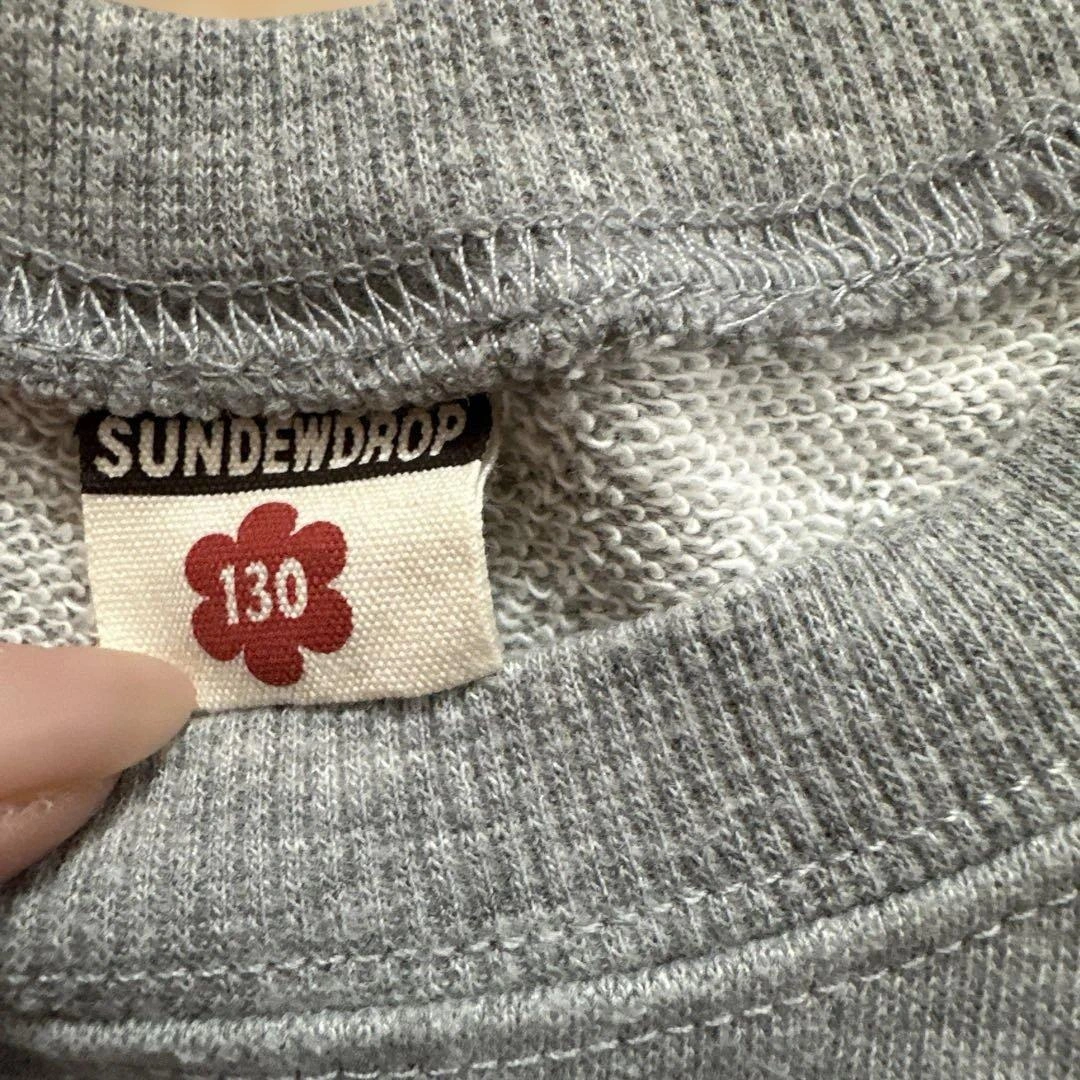 可愛いキャラクターがプリントされたグレーのスウェットです。 - ブランド: SUNDEWDROP - サイズ: 130 - 素材: 綿65%、ポリエステル35% - デザイン: グレーのスウェット、可愛いキャラクターのプリント - 適応身長: 125~135cm ご覧いただきありがとうございます。 裏起毛ではございません。 中古品にご理解ある方でお願い致します。 ピンクのトレーナーと同じ種類です。 同時購入していただける際はお値引き可能です。 お声かけください。