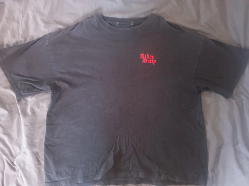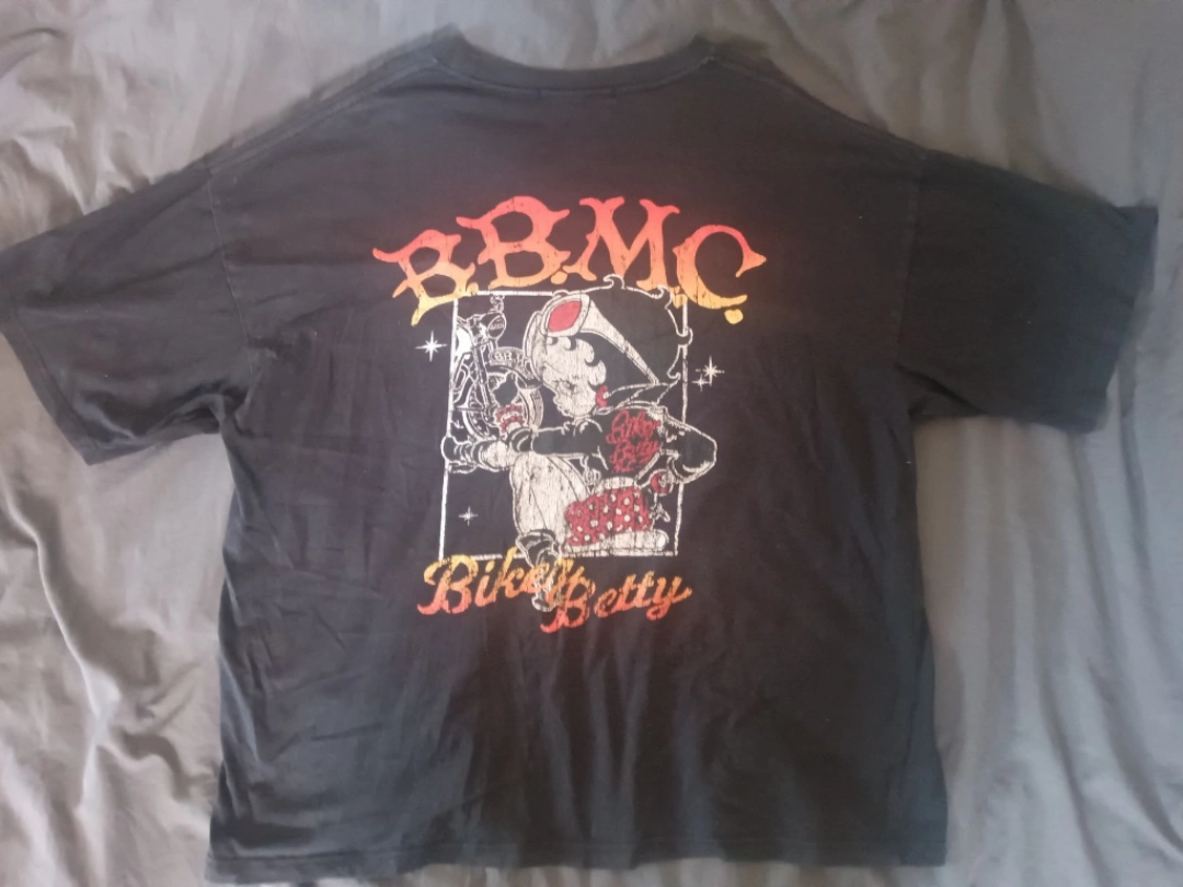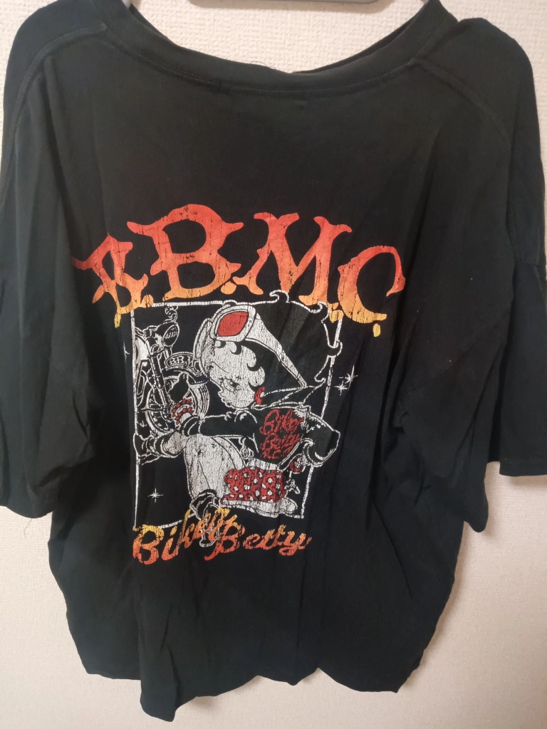 黒色のTシャツです ・色:ブラック ・デザイン:Biker Bettyのプリント ・状態:使用感あり、多少の色あせがあるため傷や汚れありにしております。 タグ切ってしまいましたがfreeサイズです。 中古品であることご了承ください