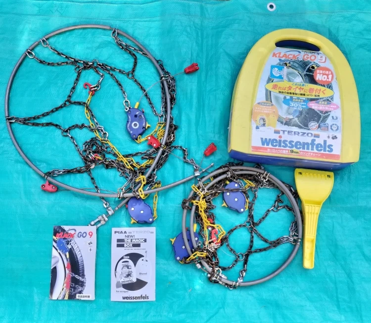 TERZO weissenfelsのタイヤチェーンです。 【情報】 ブランド:TERZO weissenfels(テルッツオ ヴェッセンフェルス) 型番:VK10 対応タイヤサイズ:205/R14、215/R14、215/70R14、205/70R15、225/60R15+S、215/60R16、235/55R15、215/55R16、225/50R16+S、215/50R17、235/45R17 【状態】 使用感あり ケースにキズ、汚れあり 3回程度使用しました。 車を変えてしまい最近は使用しておりません。 脱着は簡単で、チェーン締め付けは走っている間に自動でチェーン締め付けしてくれます。 中古品であることをご了承ください。 【引渡場所】 東横線:都立大学駅•自由が丘駅 大井町線:緑が丘駅