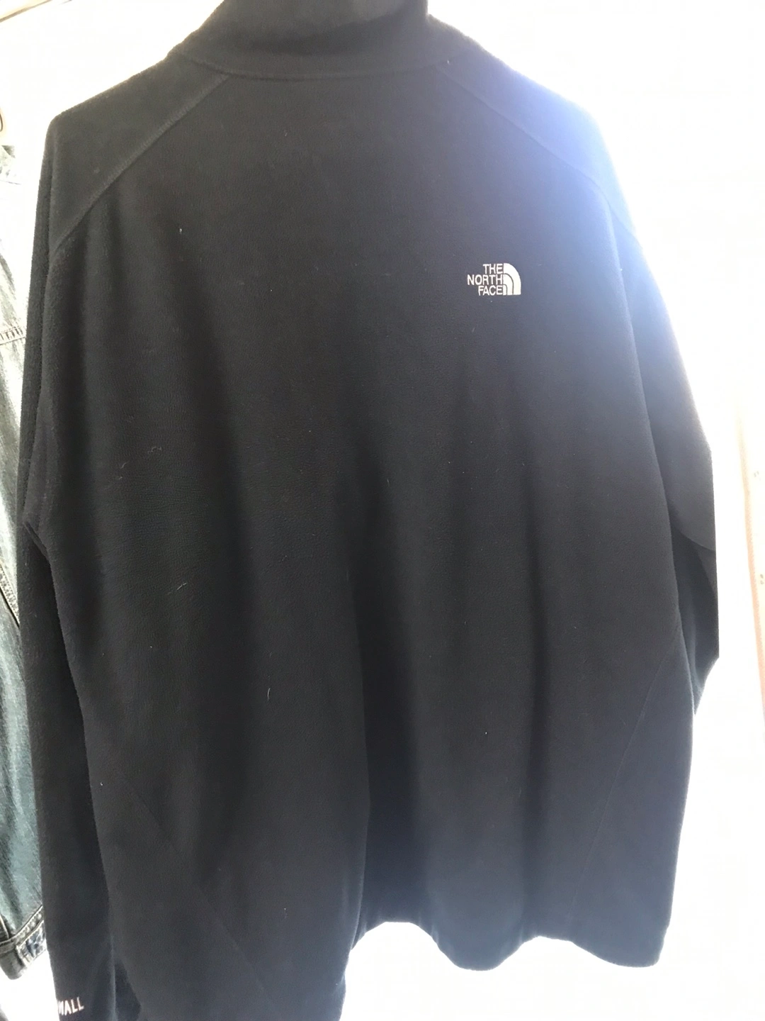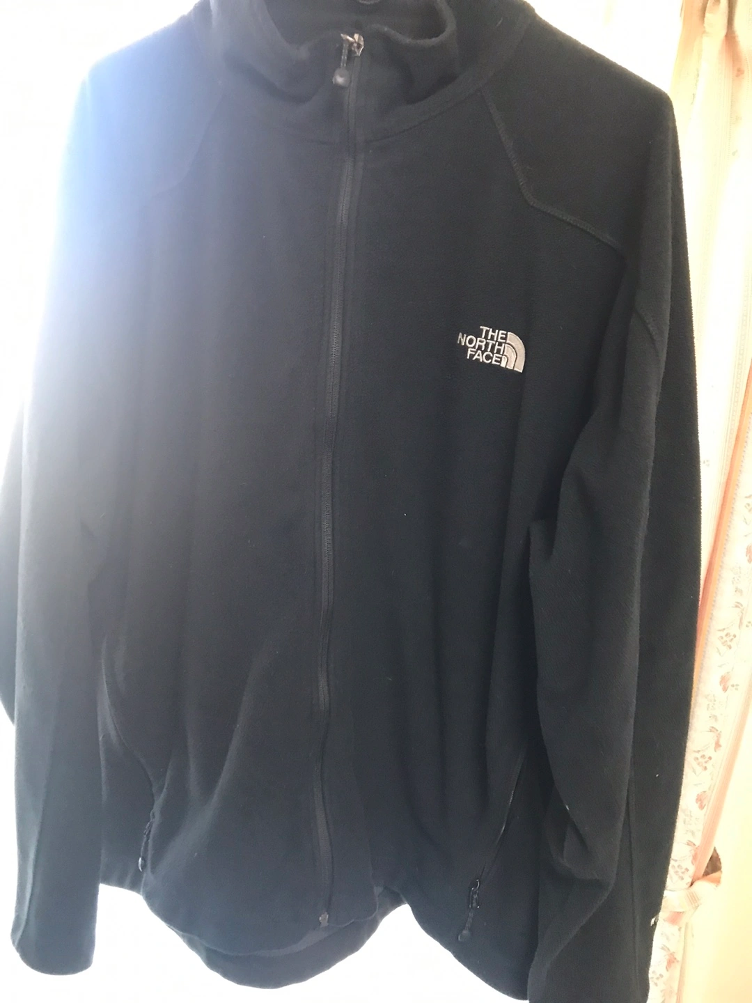 ノースフェイスのフリースジャケットになります。色は黒になります。 4枚目写真のように裏地が一部破けてます。表からはわからないです。チャックが若干かためな印象です。 サイズ記載がなくてわからないですが、身幅は約68センチになりますので、XXLサイズくらいかと思います。 まだまだ着用頂けると思います。 息子が着ていたので、質問の回答に少しだけお時間頂く場合があります。よろしくお願いします。