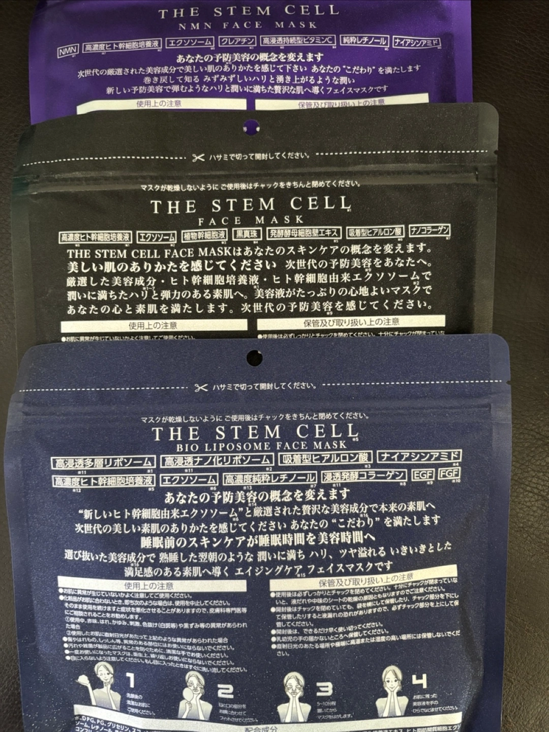 断捨離のため出品します。 未開封ですが自宅保管しておりましたので、気にならない方ご検討よろしくお願いします。 受け渡し場所は、平日夕方でしたら九品仏駅周辺も可能ですのでご相談ください。 また、まとめてご購入くださった方には気持ち程度お値引きさせていただきます。 ・NMN THE STEM CELL FACE MASK (紫) ・THE STEM CELL FACE MASK (黒) ・BIO LIPOSOME FACE MASK (青)