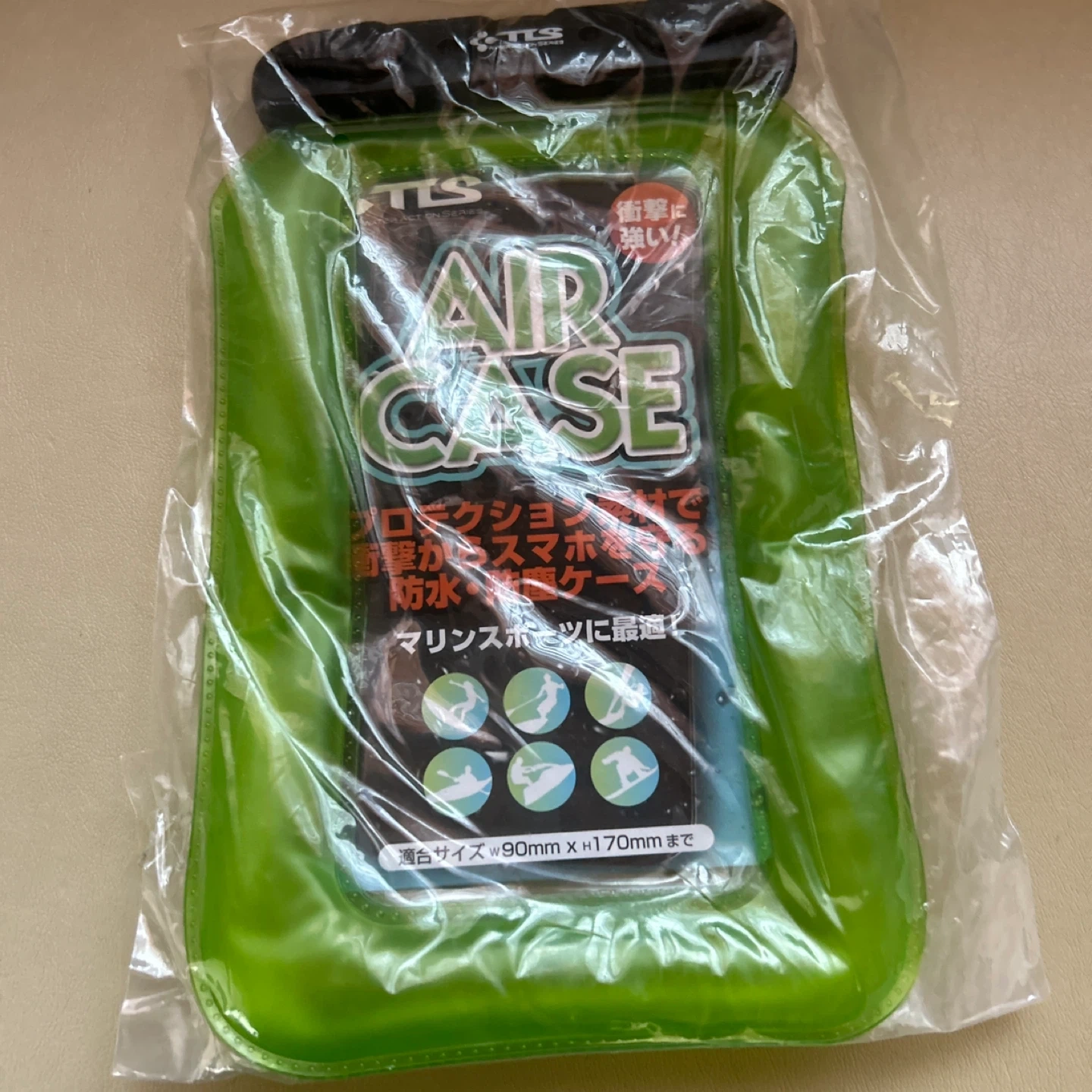 TLSの防水防塵ケースです。 ・ブランド:T o ols ・色:ライトグリーン ・サイズ:90mm x 170mmまで ・状態:新品未使用 マリンスポーツにも適しています。 発送をご希望の方は事前にご相談ください。