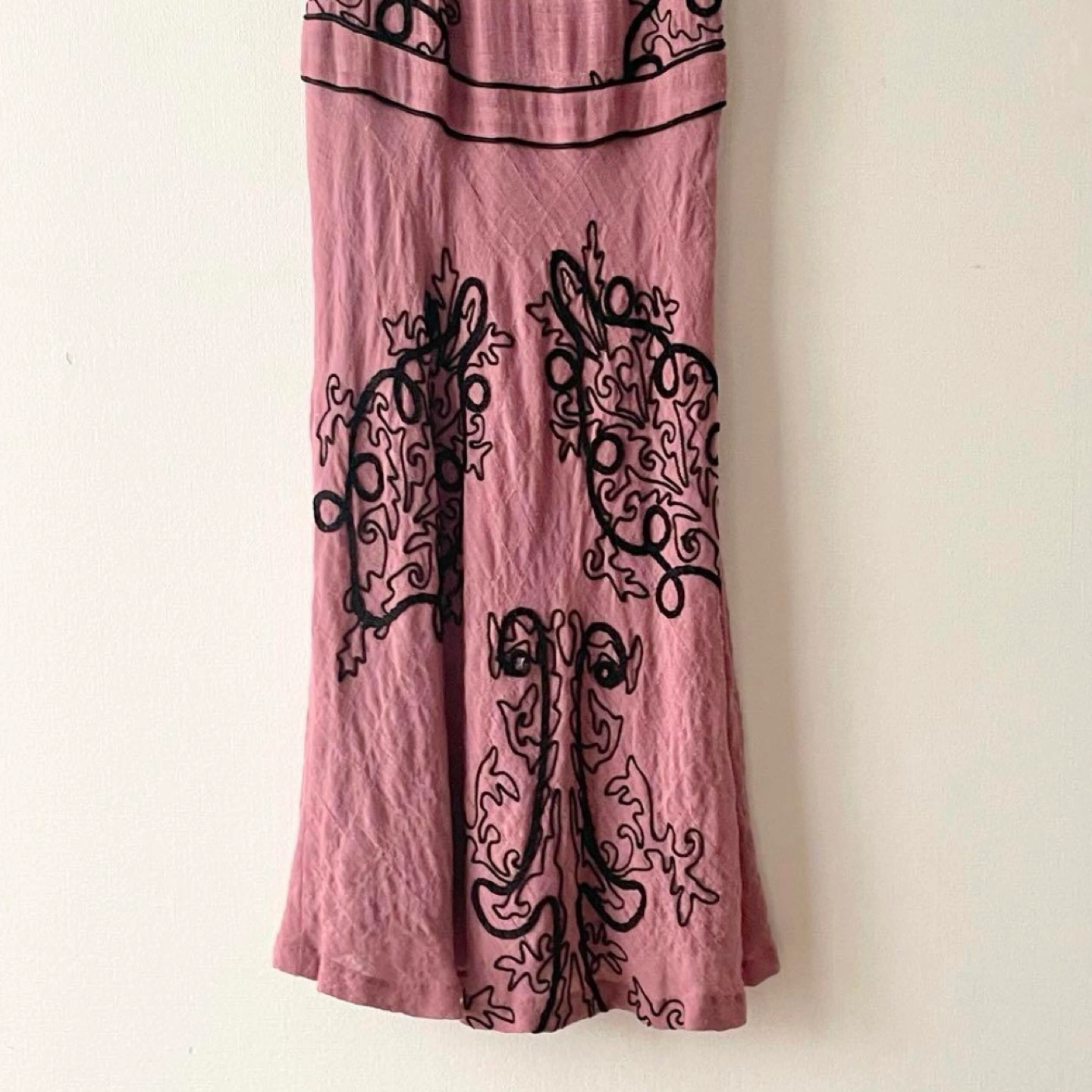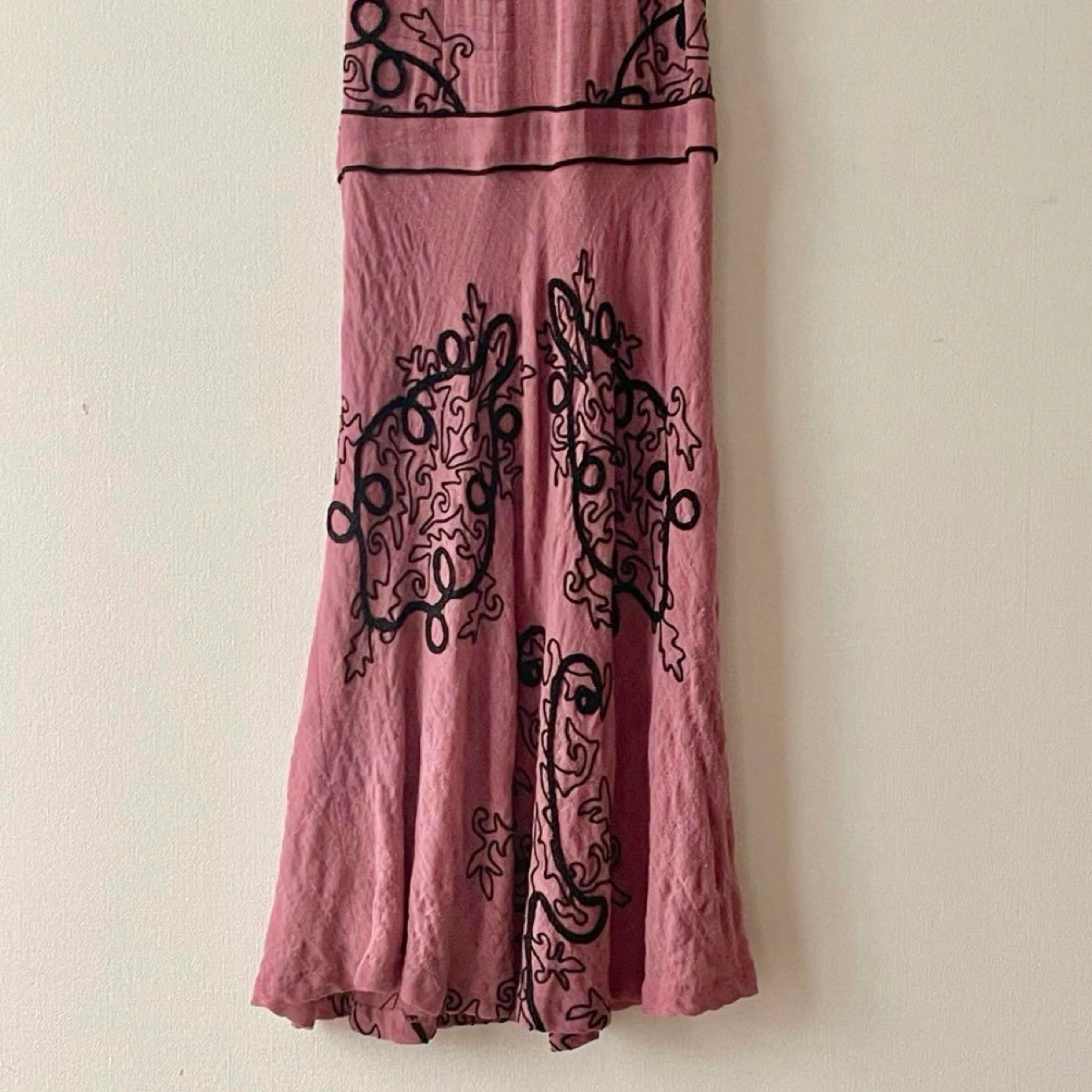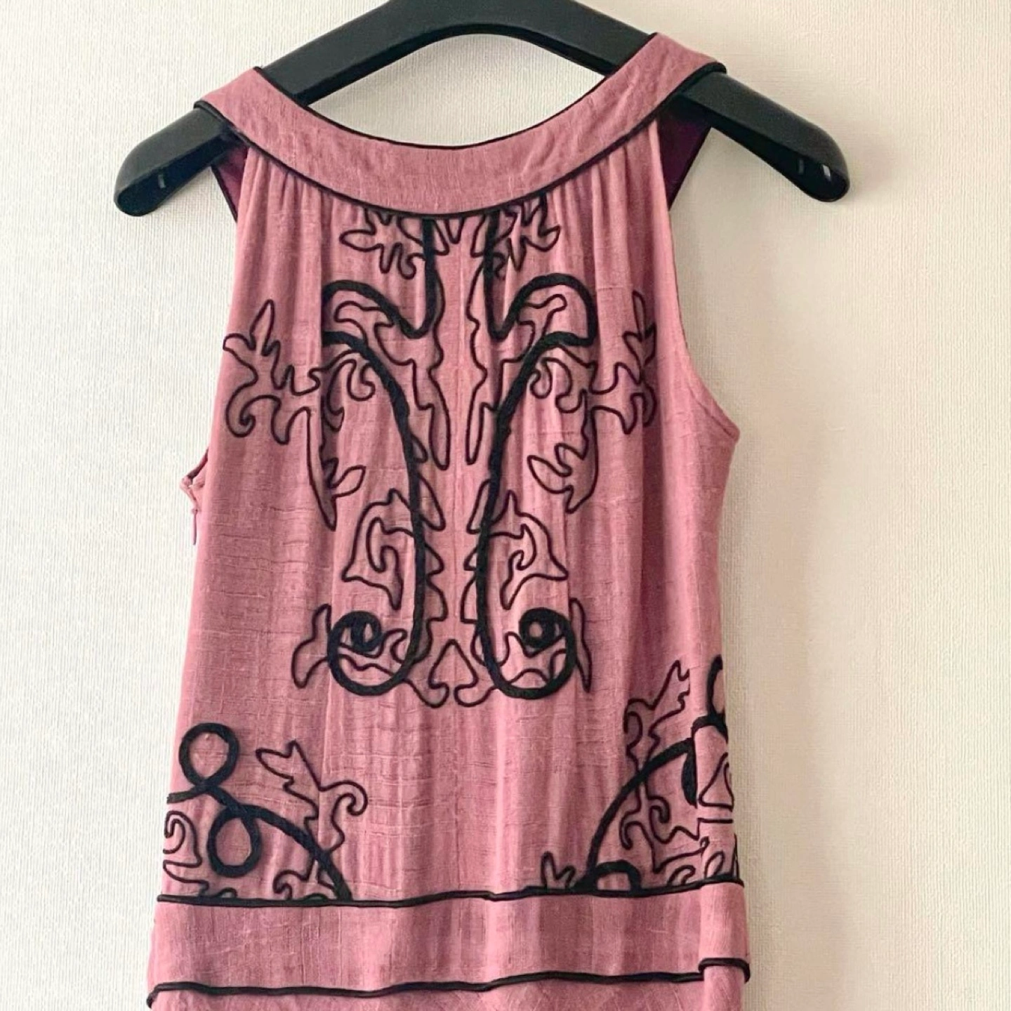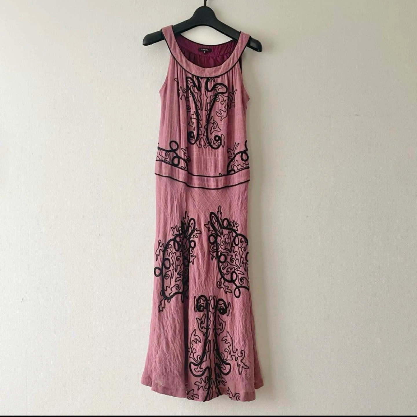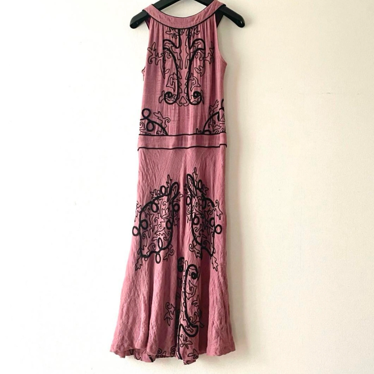 トッカ ミモレ丈ワンピース ホルターネック ブラックの刺繍が綺麗なワンピース 伸縮性あり 吊るして写真を撮ったら長細くなっていますが実際は横に広がります。 特に目立つキズや汚れはございませんが、ユーズド品であることをご理解お願いいたします。 表地 ウール100% 裏地 シルク100% 身幅···40cm 着丈···10cm ヴィアバスストップ バスストップ ロングワンピース ミモレ丈ワンピース 刺繍ワンピース