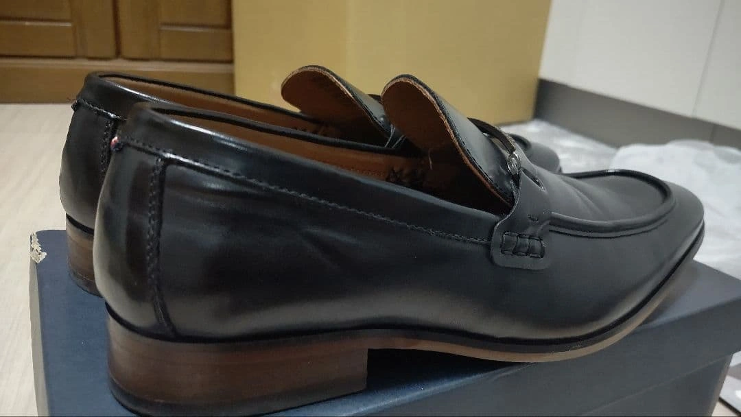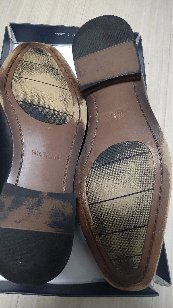 TOMMY HILFIGER SENNER ブラックレザー ローファーです。 洗練されたデザインのローファーになります。 定価は三万ほどとのことです。 別サイトで購入後、一度外で履きましたが、サイズが合わなかったため出品します。 使用感は写真1枚目~7枚目でご確認ください。 箱に破損があります(写真9枚目~14枚目参照)。 購入時から内側の面に少しスレによる剥がれがあります(写真8枚目参照)。 サイズ:9(日本サイズで約27cm) ブランド: TOMMY HILFIGER 色: ブラック スタイル: ローファー 素材: レザー ご希望の方はお気軽にご連絡ください。