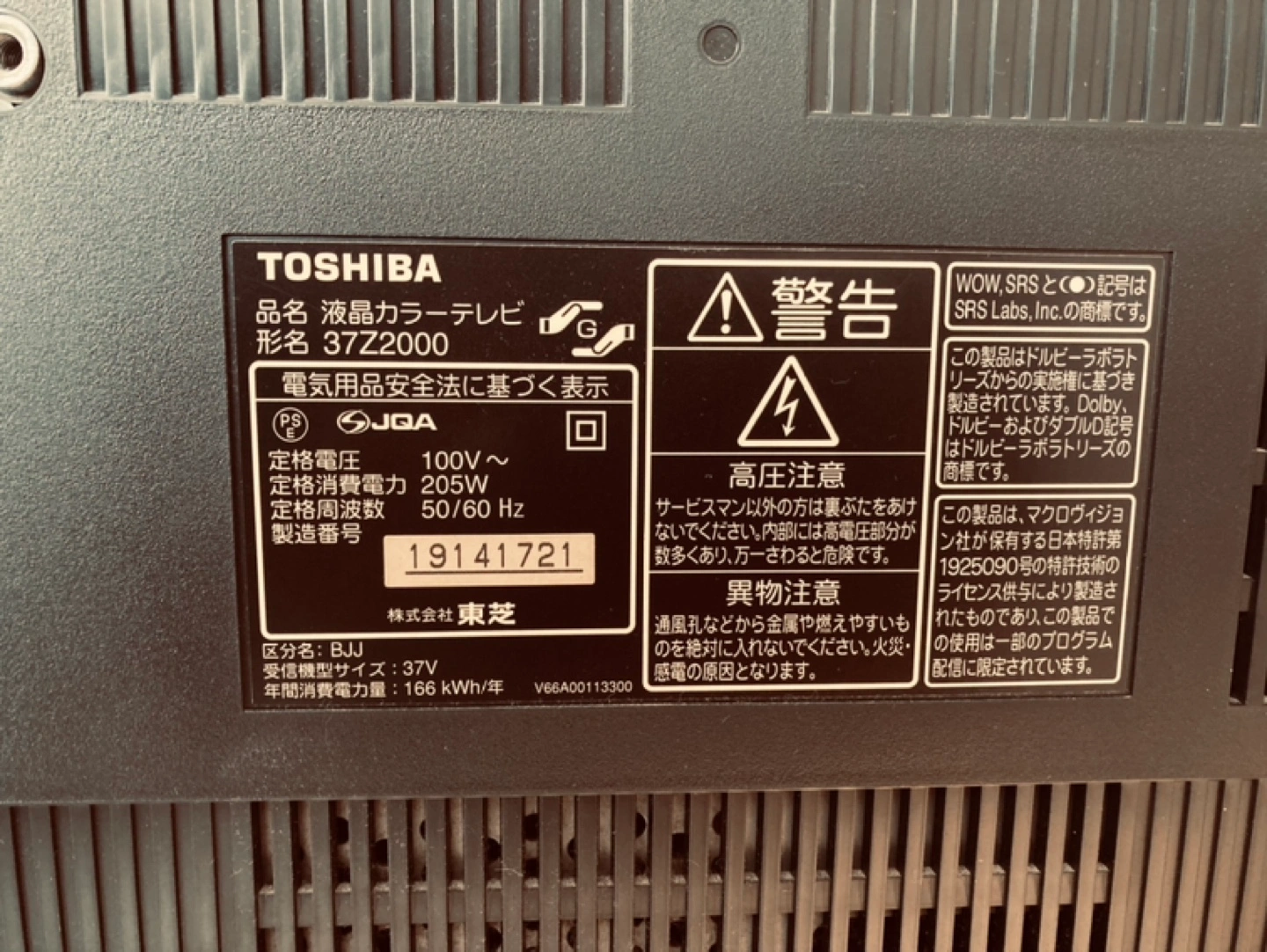 ご覧いただきありがとうございます♪ 東芝レグザ 37インチテレビ 引っ越しに伴いまだ作動するため処分するにはもったいなくてこちらでお譲りさせて頂きたく出品させていただきました。 リモコンは元のものが壊れてしまったため途中でAmazonで購入したリモコンをお付けいたします。 よろしければアンテナ線もお付けします。 https://cs.regza.com/mnul/?_gl=1*frav8u*_gcl_au*MjA5NDY4MDEwNS4xNzMzMTA2ODQ2*_ga*MTAyODE1MDgxNy4xNzMzMTA2ODQ2*_ga_DEMGEMMKKL*MTczMzEwNjg0Ni4xLjEuMTczMzEwNjg0OC41OC4wLjA.&_ga=2.56348712.245943695.1733106846-1028150817.1733106846 説明書はここから見られます。 型名は37Z2000です。