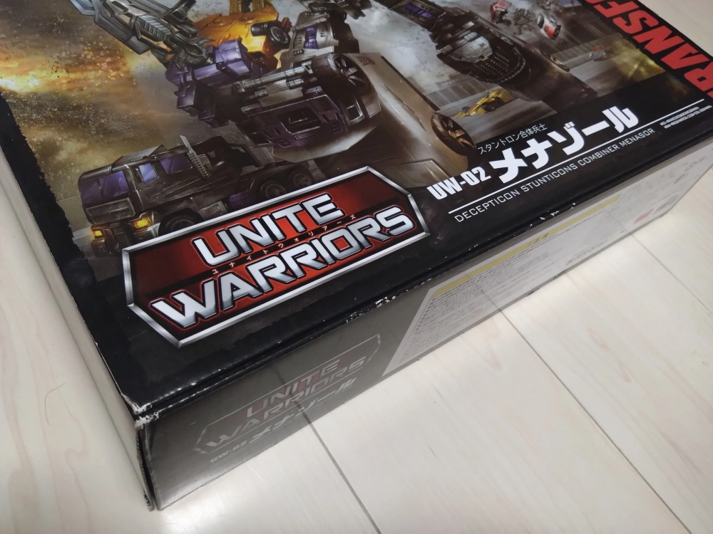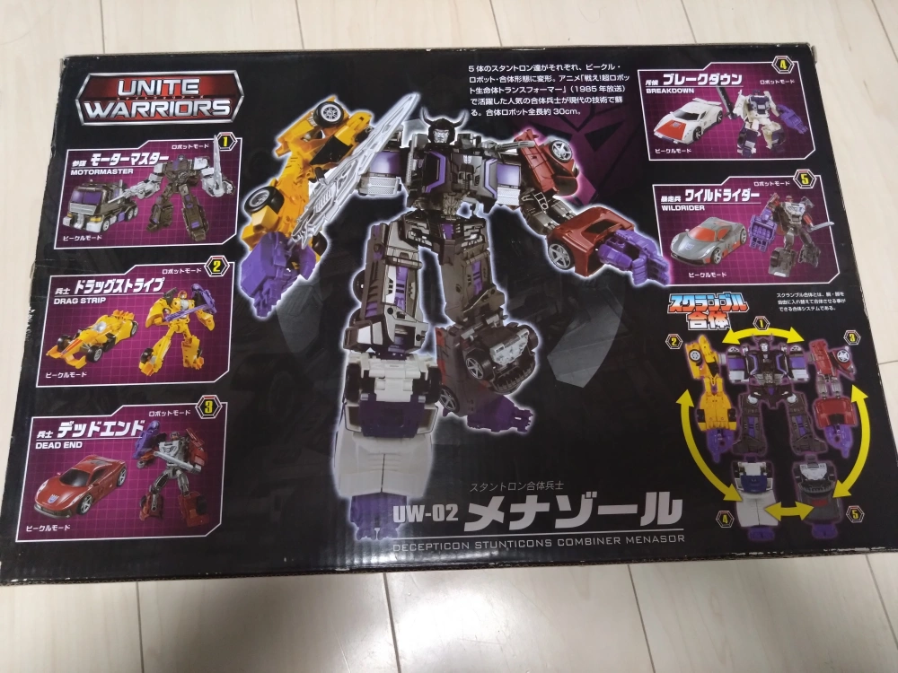 ユナイトウォリアーズ UW−02メナゾール 経年劣化による、箱の色あせ・キズ・凹みがあり。 購入時からそのまま保管してありますで、プラ、ゴム等の劣化具合は不明です。 受け渡しの場所は移動可能な場所なら対応いたします。