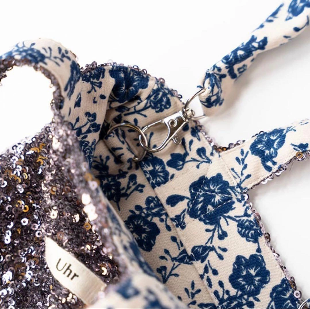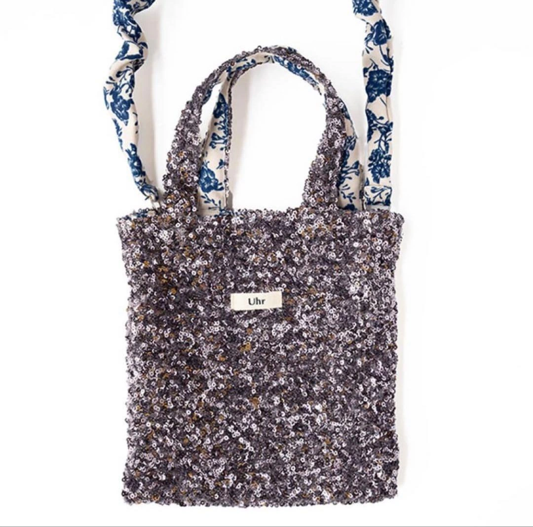 スパンコールデザインのシルバーバッグです。内部にポケットが付いており実用的です。 - 色: シルバー - デザイン: スパンコール - ストラップ素材: 布製 - 内部ポケット: あり - ブランド名: Uhr サイズ W19cm×H20cm (Shoulder:約100cm) ■カラー Silver ■素材   本体:ポリエステル100%       裏地:リネン100%(Pink)、ポリエステル100%(Silver&Black) 親子でお使いいただけるUhrで大人気のスパンコールミニショルダーバッグです。 ショルダー部分は、Uhrのお洋服を作る上で出てしまう残布や、使用する生地と連動したものが使用されており、取り外し可能でミニバッグとしてもお使いいただけます。 スマホ、お財布、サングラスなど、見た目以上に物が入り、さまざまなシーンで活躍します! ショルダーは大人も斜めがけしやすい長さで、お子様が持つ際は、短く結んで長さを調整し、親子で楽しめる仕様となっております。 ご希望の方はお気軽にご連絡ください。