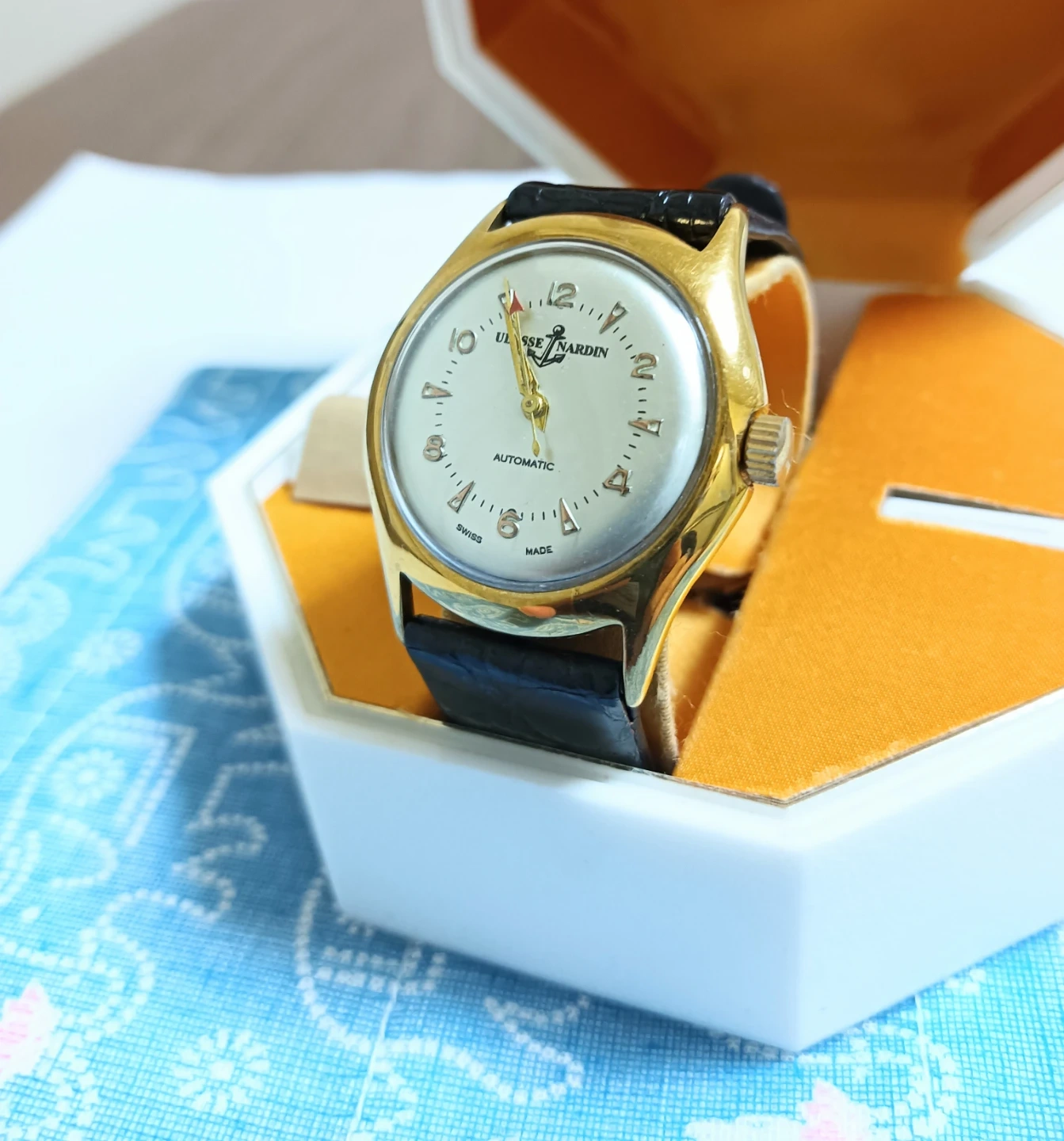 ★★  ULYSEE NARDIN ユリスナルダン 自動巻き オートマチック ヴィンテージ 腕時計 ユニセックス 正確作動 日差±約20秒程 社外ベルト 風防及び針を修理交換しました。 ★★ スイスの名門ブランド。 ユリスナルダンのヴィンテージ ボーイズsizeのオートマチック腕時計です。 ★★ ケースがイエローゴールド製か、ゴールドGP製か定かで無いのでGP扱いとします 写真の通り全体的にも綺麗な状態と思いますが、 ヴィンテージ時計なので微かなスレはご容赦。 ★★ 腕周り 約15〜19㎝ color ゴールド&シルバー 現物のみとなります。
