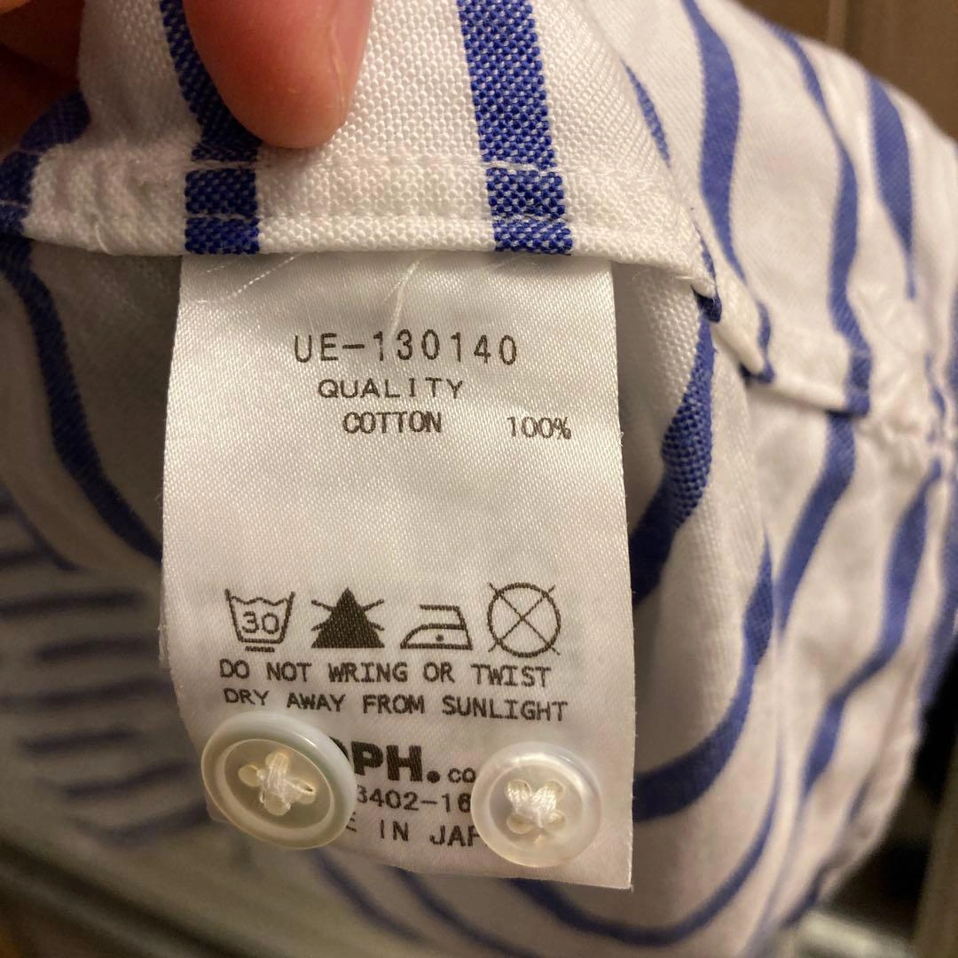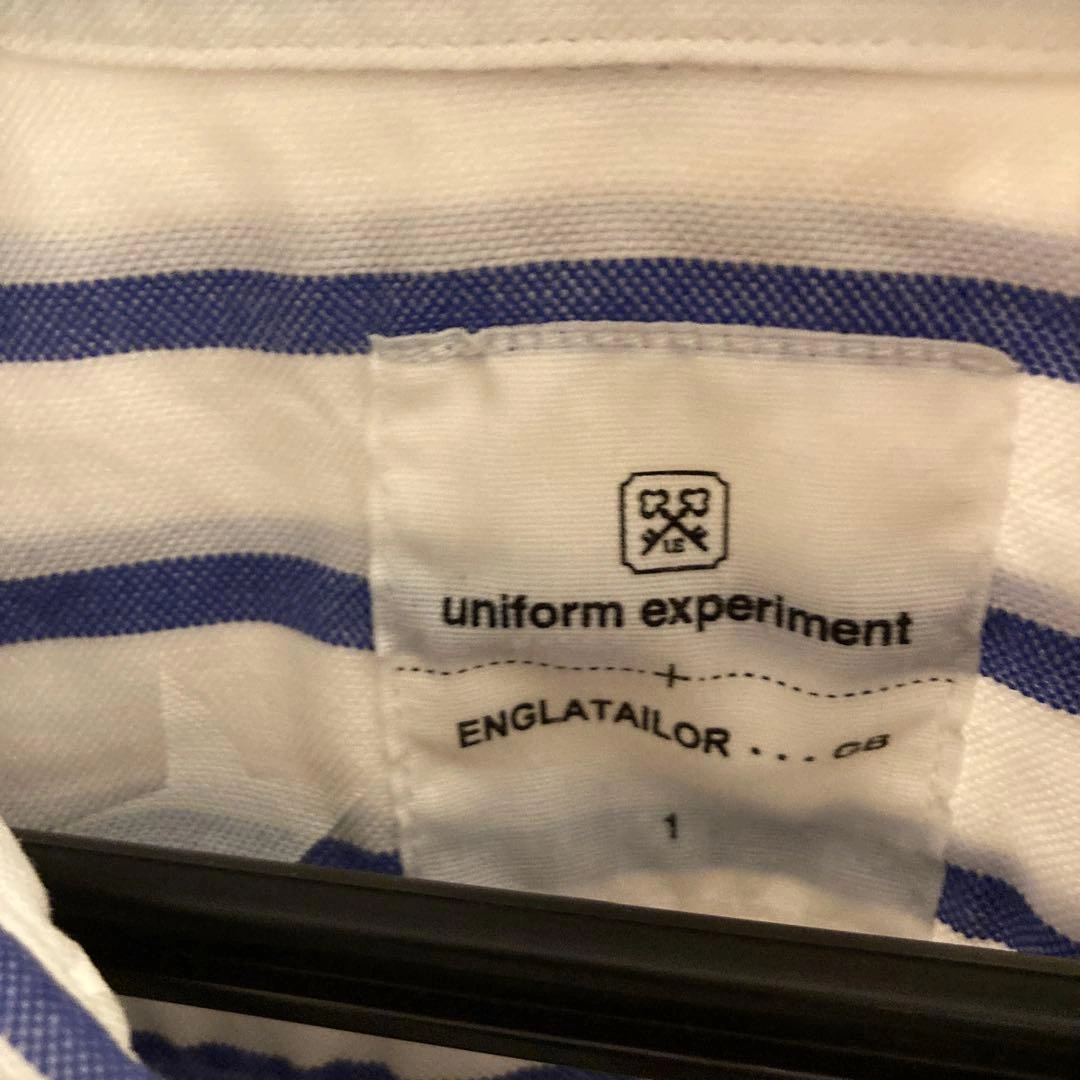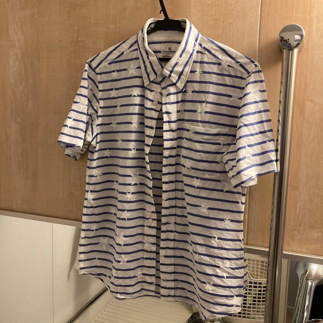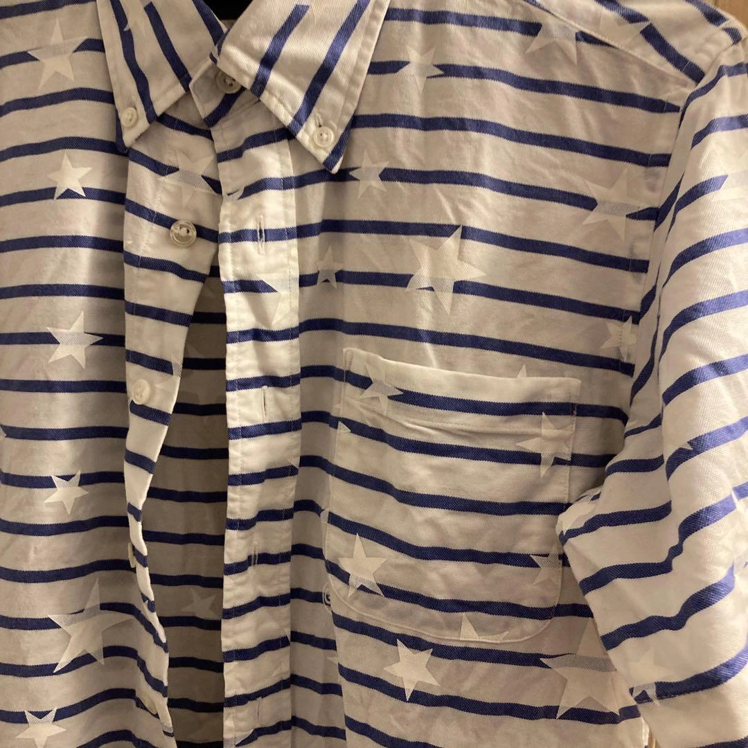 白と青のストライプに星柄デザインの半袖シャツです。 - ブランド: uniform experiment - モデル名: ENGLATAILOR - 色: 白/青のストライプ - デザイン: 星柄のストライプ - サイズ: 1 UE-130140 半袖シャツ/2/コットン/WHT/M/星柄/ストリート/UE-130140/M/スター/ボーダー/ボタン ご希望の方はお気軽にご連絡ください。