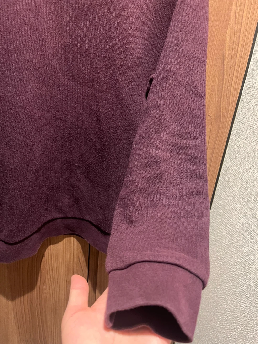 数年前に店頭で購入し、最近まで着用していましたが、断捨離のため、出品します。 GREEN LABEL RELAXINGのニットです。 落ち着いたワインレッドカラーでよく見るとストライプが入っています。 Sサイズですが、ゆったりと着れるため、Mサイズを普段着用の人でも問題ないかもしれません。 コットン98%、ポリウレタン2%で暖かく、冬向けかと思います。 やや色落ち感はありますが、目立った汚れや傷などはなく、まだまだ着用できると思いますが、あくまで中古となりますので、ノンクレーム・ノンリターンでお願いします。 素人採寸のため誤差はあるかもしれませんが、サイズは下記の通りです。 【サイズ】 肩幅50cm 着丈66cm 袖丈57cm 身幅49cm こちらは引き取り限定となりますので、日程調整がスムーズな人から優先させていただきます。 よろしくお願いします(^^)