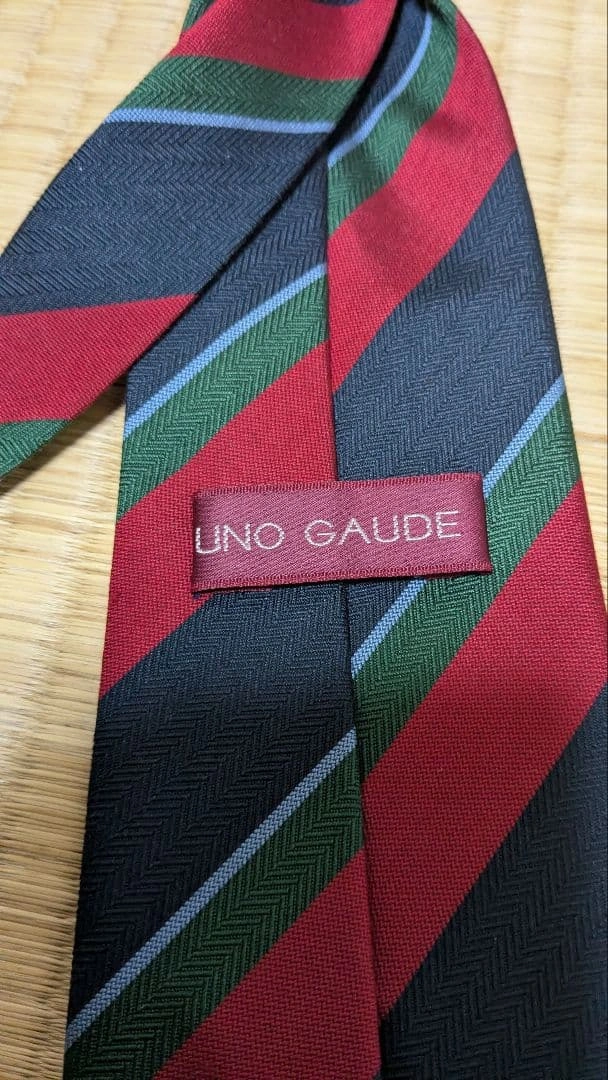 【TEON】ベージュ系ストライプ柄・細幅シルクネクタイ