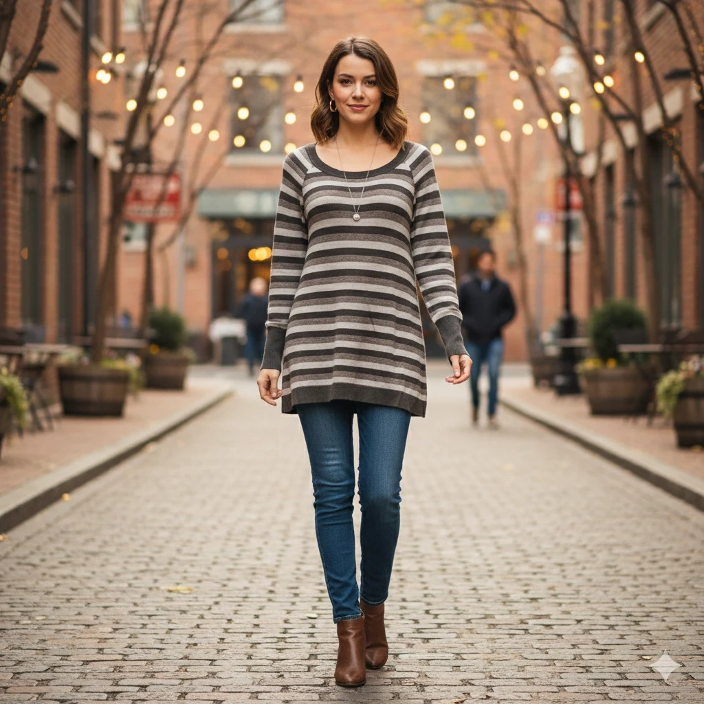 UNTITLED アンタイトル ニット ボーダー チュニック丈 カシミヤ混 2