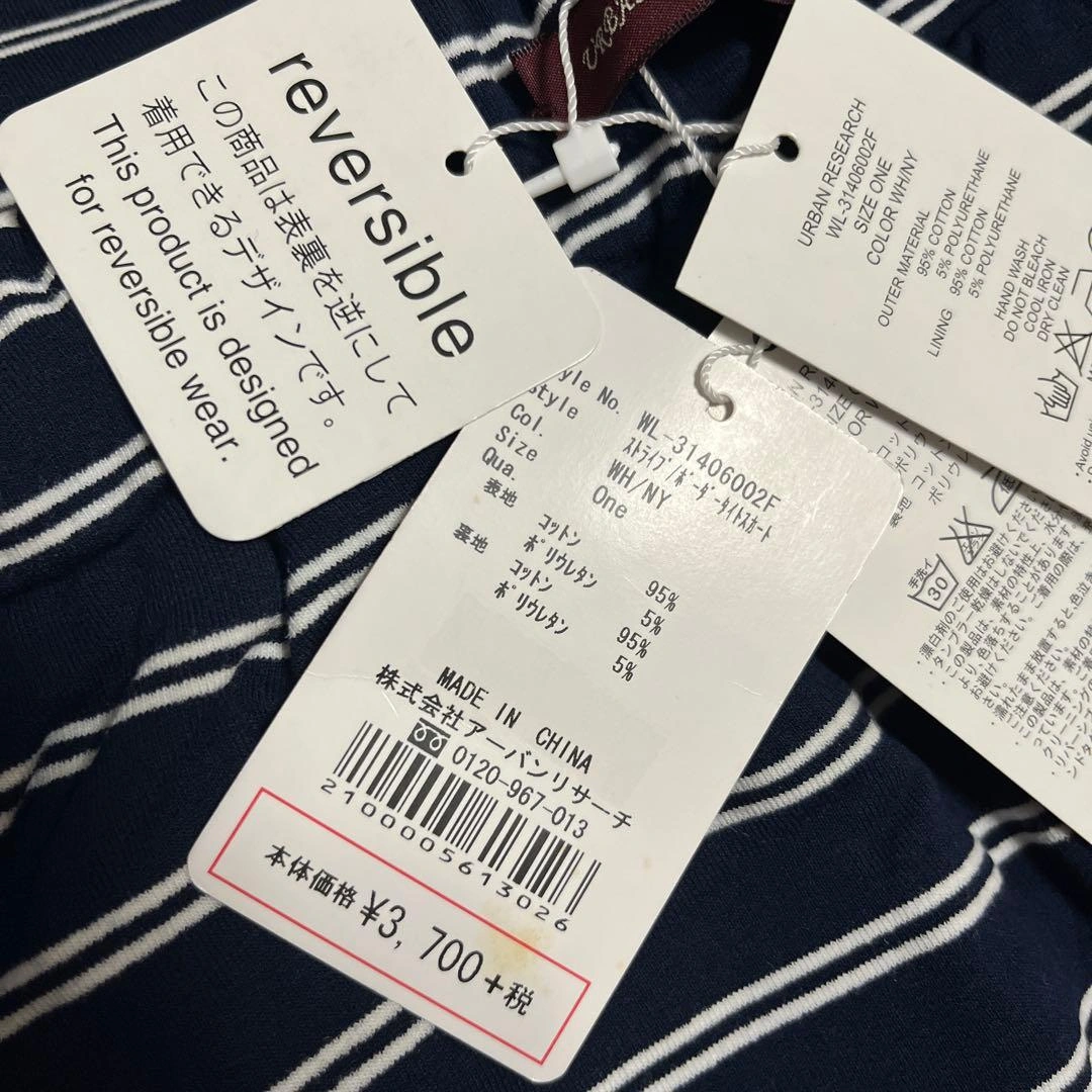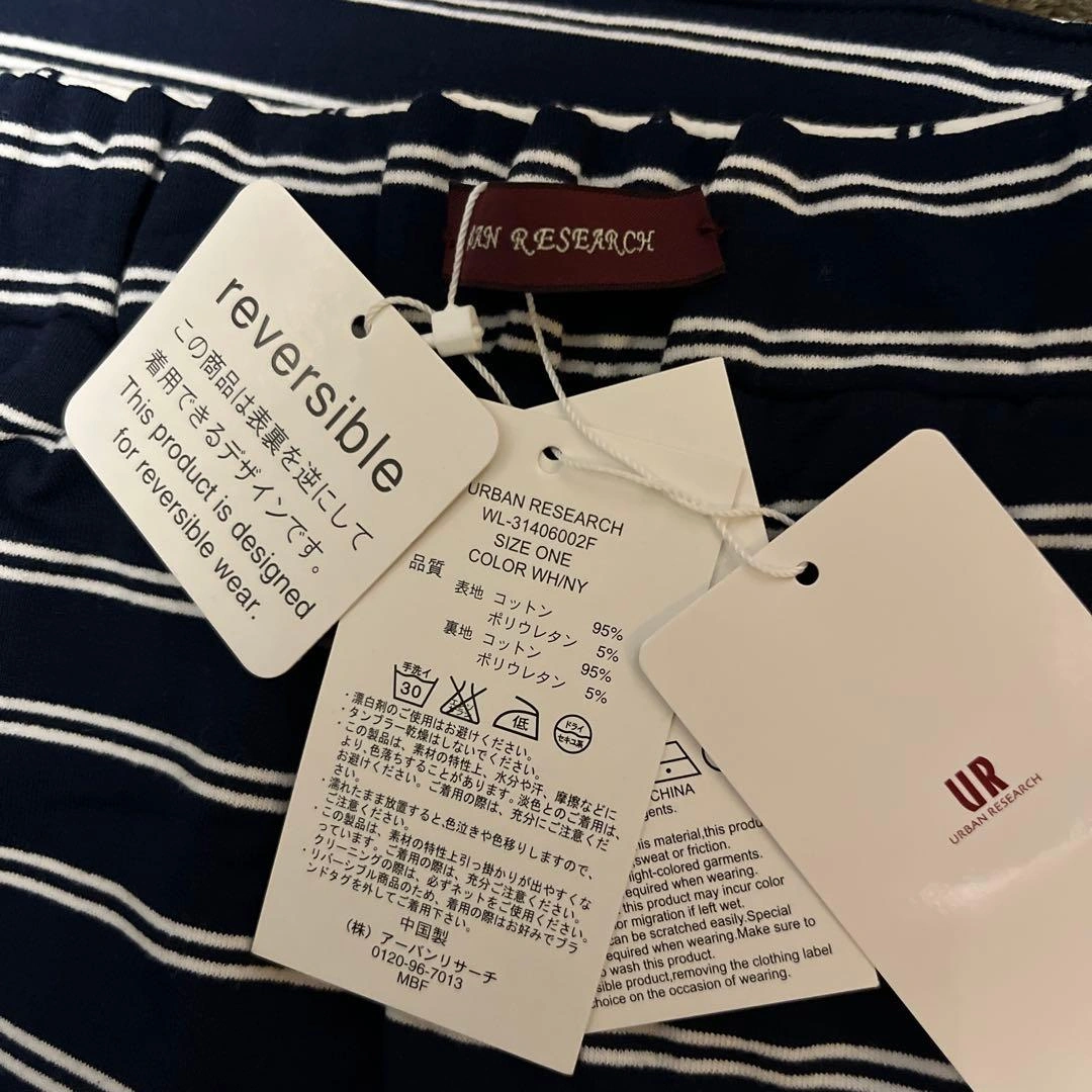 ★新品未使用タグ付き★アーバンリサーチ★ reversible skirt ♪白ベースの面は、紺の縦ストライプ ♪紺ベースの面は、白の横ストライプ スウェット生地で着心地抜群♪ ウエストゴムで楽♪ 定価3,700円 【デザイン】 このスカートは、白と紺のストライプデザインが特徴で、シンプルながらもスタイリッシュな印象を与えます。 【素材】 95%のポリエステルと5%のポリウレタンを使用しており、柔らかく伸縮性があります。快適な着心地を提供します。 【機能性】 リバーシブル仕様のため、異なるスタイルを楽しむことができ、コーディネートの幅が広がります。 - 色: 白と紺のストライプ - 色: 紺と白のストライプ - ブランド: URBAN RESEARCH - サイズ: フリー - 素材: 95% ポリエステル, 5% ポリウレタン - 特徴: リバーシブル ご覧いただきありがとうございます。