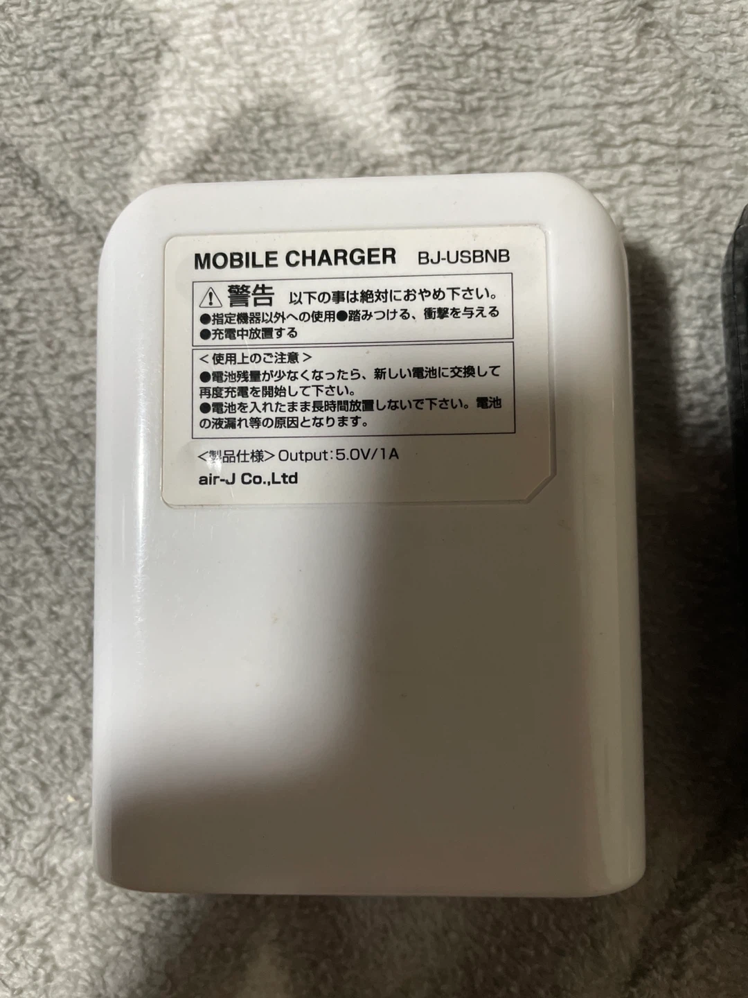 USBモバイルバッテリー充電器のセットです。単三電池4本で作動します。スマホやワイヤレスイヤホンの充電に最適です。 【情報】 モバイルチャージャー ブランド:air-J Co.,Ltd 【状態】 使用感あり まだ使用できます。 ご不明点があればお気軽にご連絡ください。