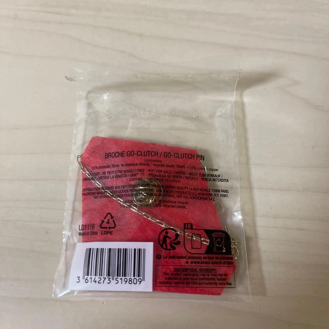 ご覧いただきありがとうございます。 ノベルティのピンバッジになります。 袋自体は何度か開封しておりますが、新品未使用です。 未使用ですが家庭保管の中古品の為、神経質な方、些細な見逃しが気になる方は購入をお控え頂きますようお願いいたします。 Valentino Beauty 刺繍 チェーンの素材: 金属 何とぞよろしくお願いいたします。