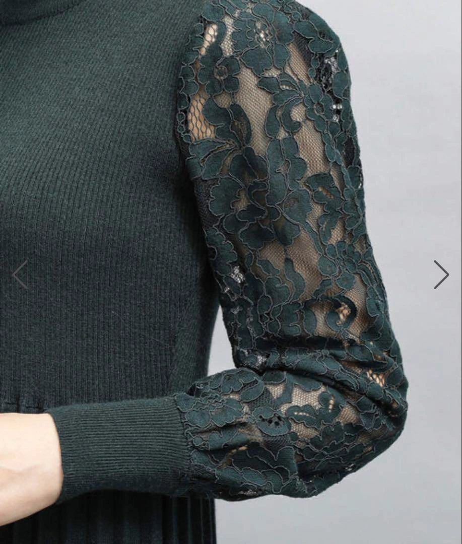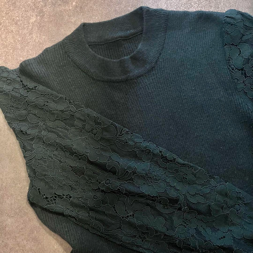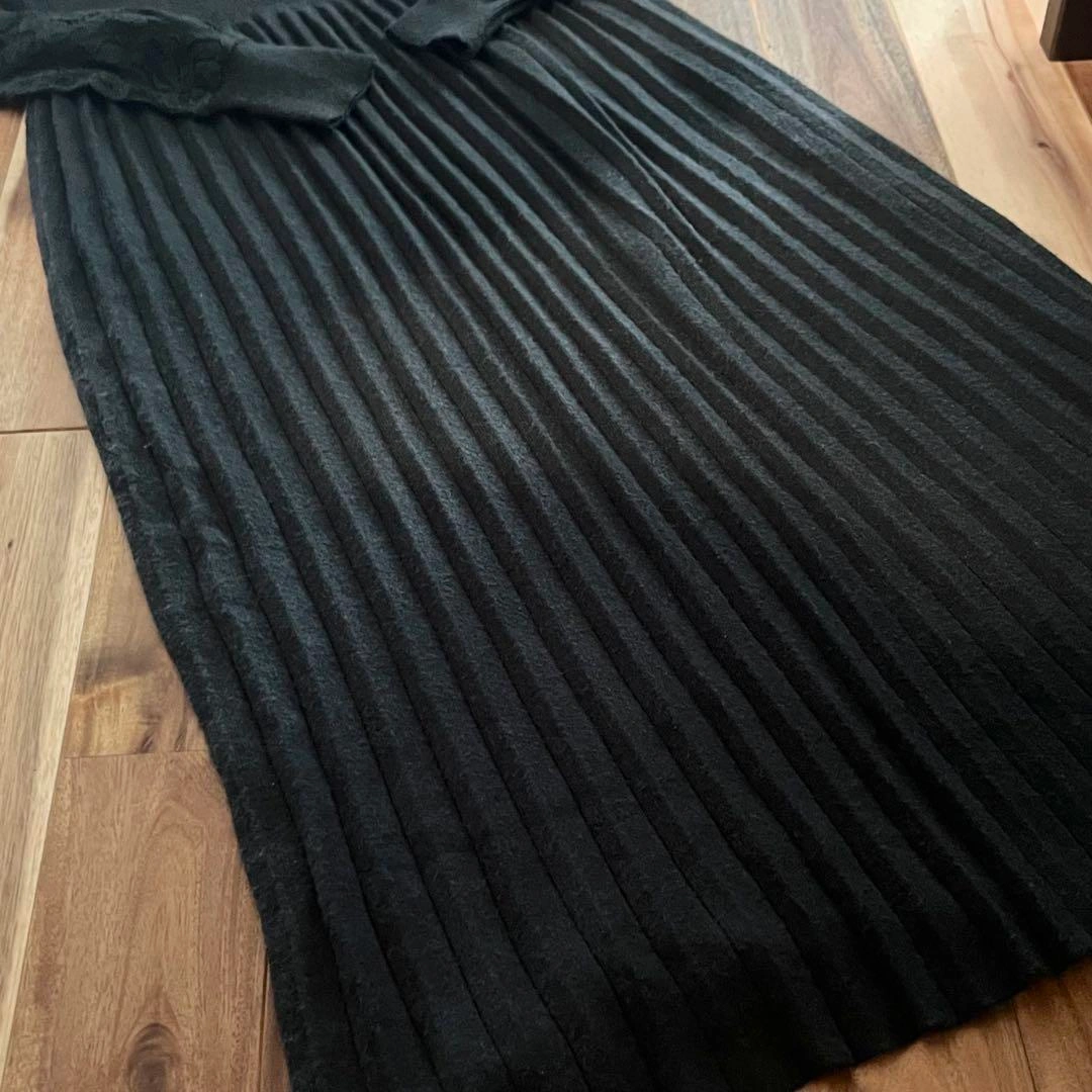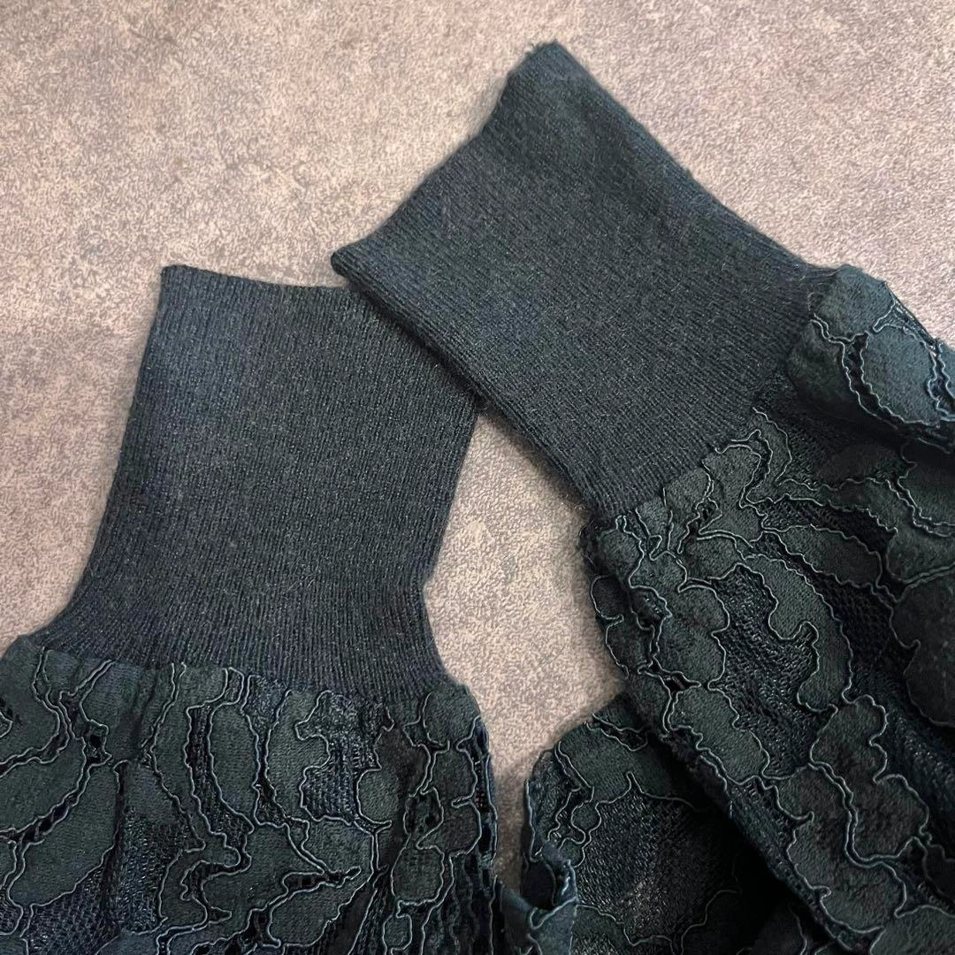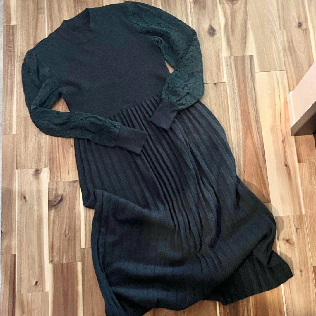 腕のレース生地が可愛いプリーツニットワンピースです。 クラシカルな上品見えするニット素材で、普段着にもパーティーなどのお呼ばれにも重宝します! おしゃれで落ち着いたダークグリーンカラーです。 フリーサイズですが、着心地はぴったりめのMくらいです。 総丈:110 肩幅:30 バスト:82 袖丈:59 襟よれ・毛羽立ちがあります。 ご希望の方はお気軽にご連絡ください。