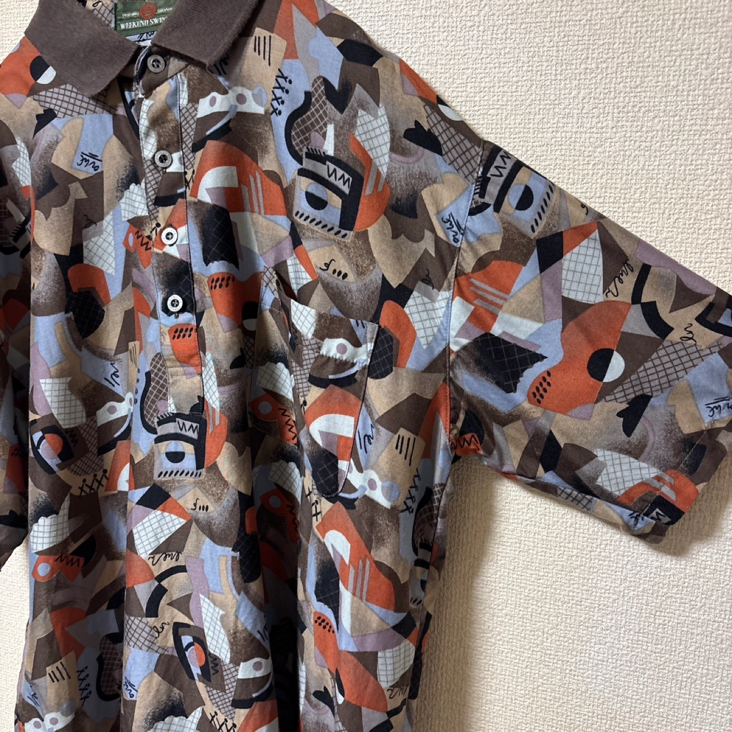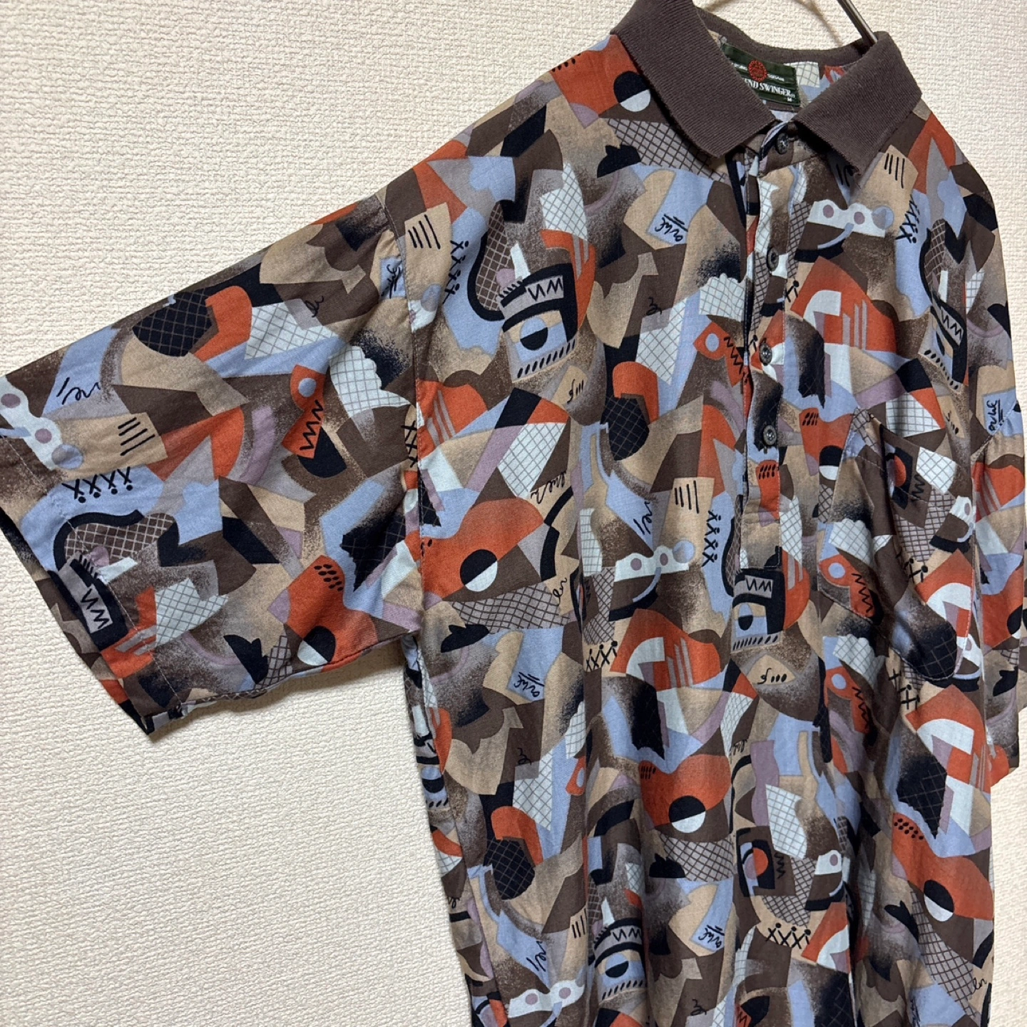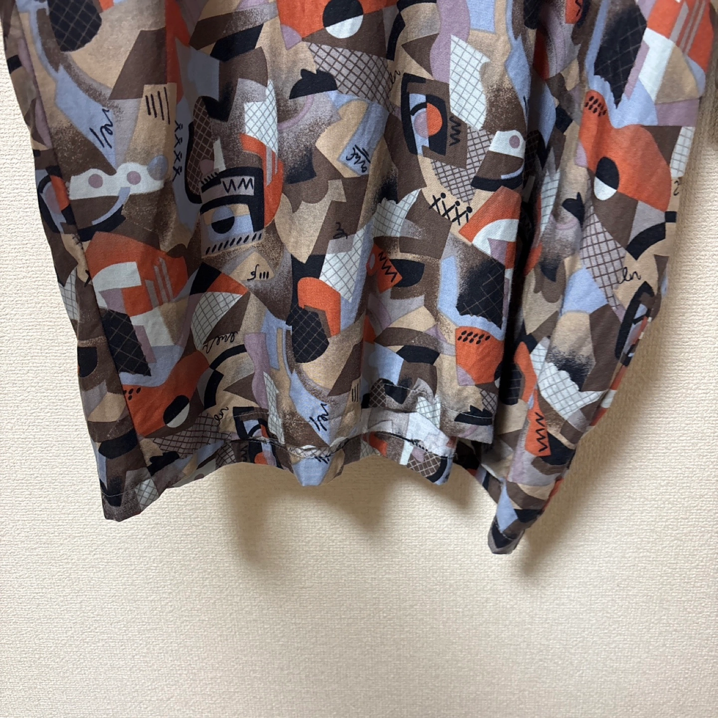 【美品】ZARA メンズ 半袖 プリントシャツ サファリ オフホワイト