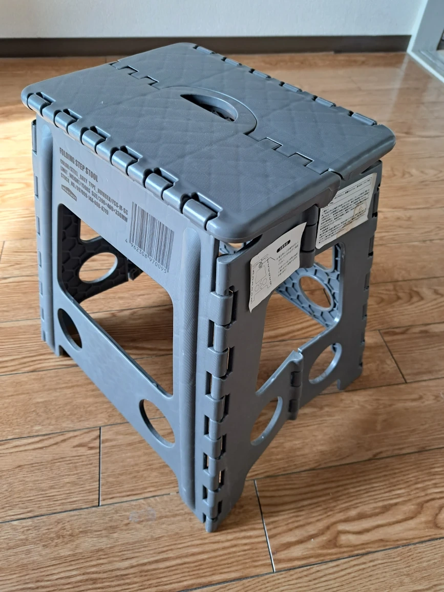 帰国しますので良かったらお取りください。 https://amzn.asia/d/bKTLiAw Color: Gray Size (W x D x H): Approximate: When in use: 15.4 x 13.0 x 15.7 in (39 x 33 x 40 cm); When folded: 15.4 x 1.8 x 21.3 in (39 x 4.5 x 54 cm) Material: Main: Polypropylene, calcium carbonate; Anti-slip grip: Rubber (TRP) Weight: Approx. 3.3 lbs (1.5 kg); Load capacity: Approx. 330.7 lbs (150 kg) Please note that the load capacity has been tested but it is not guaranteed