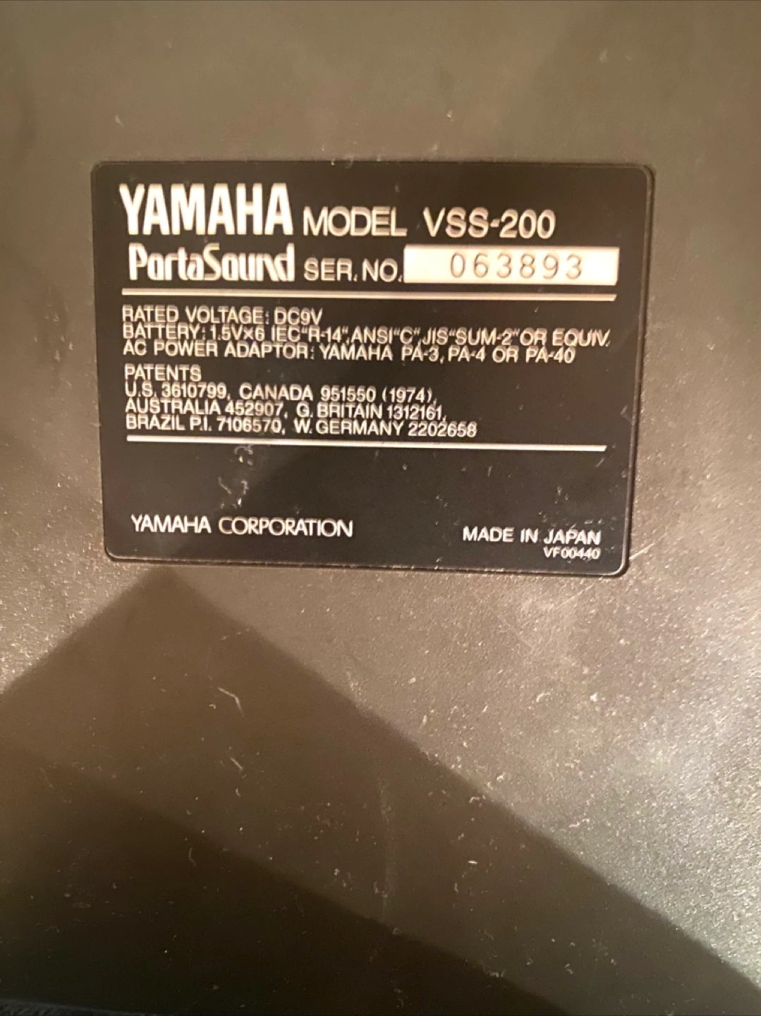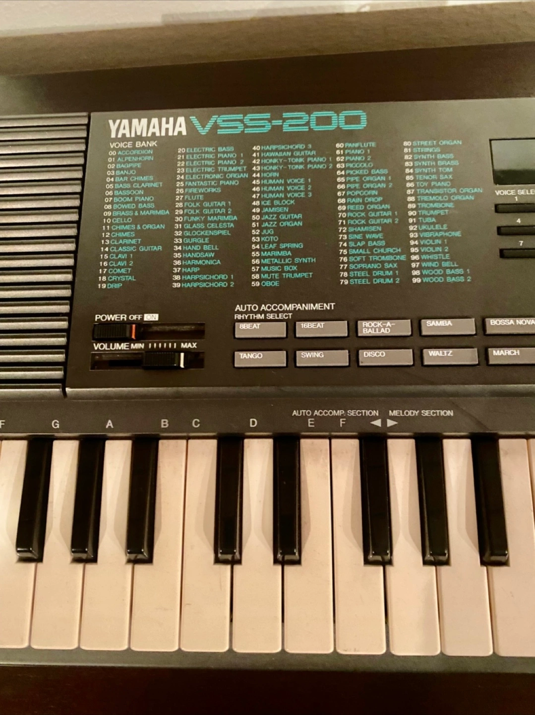 VSS-200は、ヤマハの小さな「おもちゃ」サンプラーの最後として1988年に発売されました。 自動伴奏セクション、100のプリセットボイス、そしてサンプリング機能があります。 49個のミニキー、ベロシティやアフタータッチはありません。スピーカー2つ内蔵されています。 小さなマイク付き。 付属品:電源アダプターのみ キーボード、サンプリングは問題なく動作しています。 ノークレームノーリターンでお願いいたします。