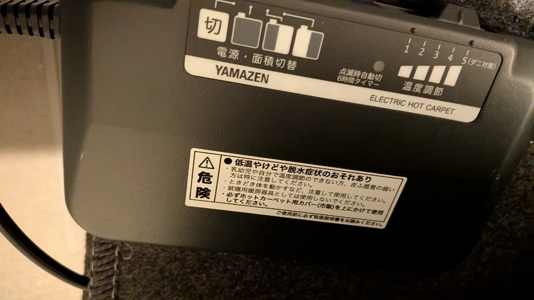 山善YAMAZENヤマゼン2024年製 電気カーペットホットカーペットです。 ・ELECTRIC HOT CARPETの記載あり ・温度調節機能付き(1~5段階) ・YAMAZENのロゴあり 消費電力:740W 消費電力量(1時間あたり):約370(目盛3)・490(目盛5)Wh 電気代目安(1時間あたり):約8.2(目盛3)・10.8(目盛5)円 表面温度(目安):約36(目盛3)・45(目盛5)度 コード長さ:約1.5m ダニ退治機能:高温でダニを退治 裏面すべり止め加工 切り忘れ自動OFF:約6時間後に自動的に通電が切れる安心機能 暖房面切替:全面・左・右と暖房面を切りかえることができ経済的 裏に少し毛玉あり あとは比較的綺麗な状態です。 ▶ 中古品、または未使用品でも素人保管の品を出品しています。商品の写真や状態をよくご確認の上、ご購入ください。基本的にノークレーム・ノーリターンでお願いしております返品不可です。 ▶ 商品の状態以外に関する質問や仕様に関しては、お答えできない場合があります。品番が記載されている場合は、そちらをご参考にご自身でお調べください。