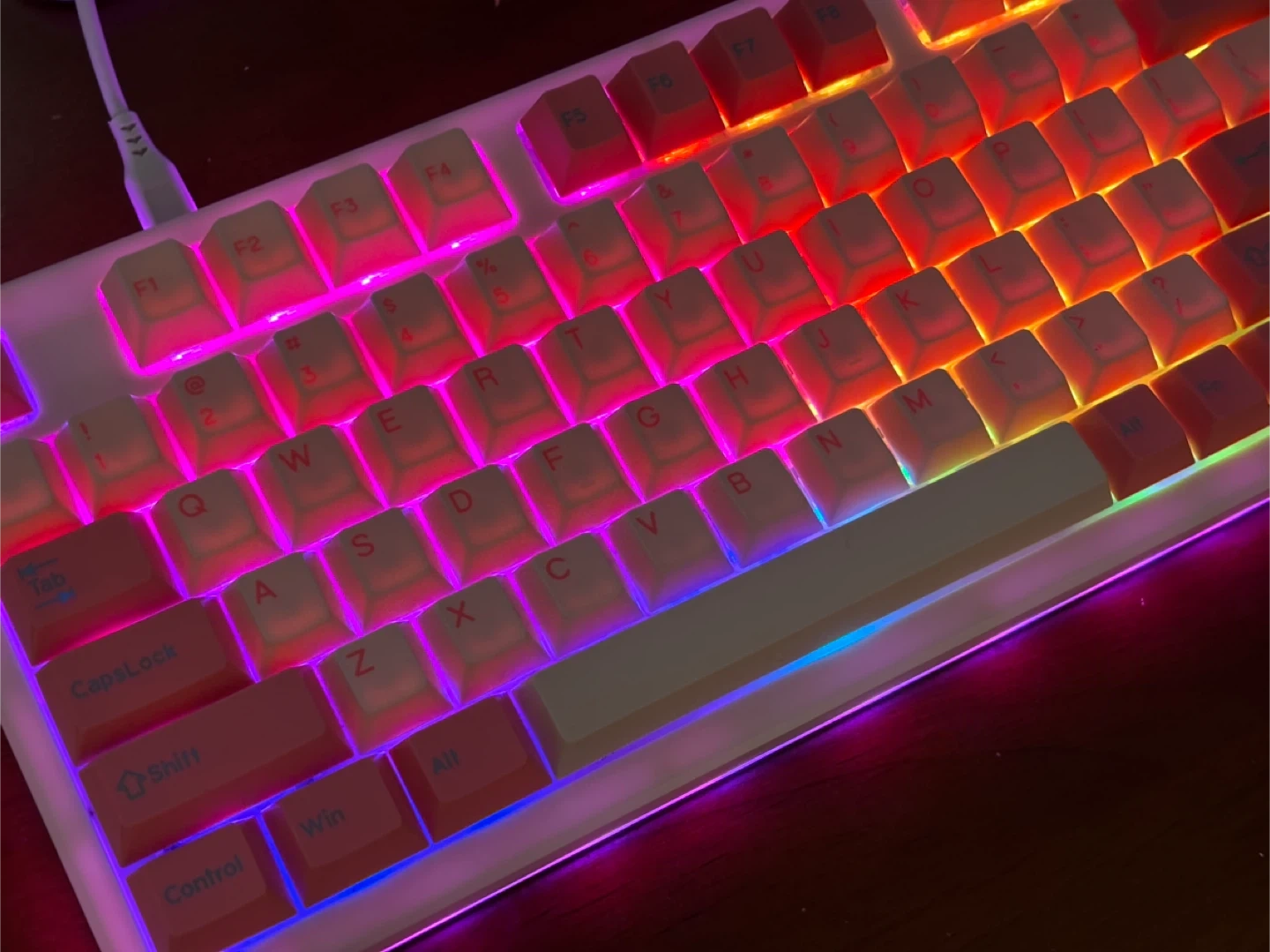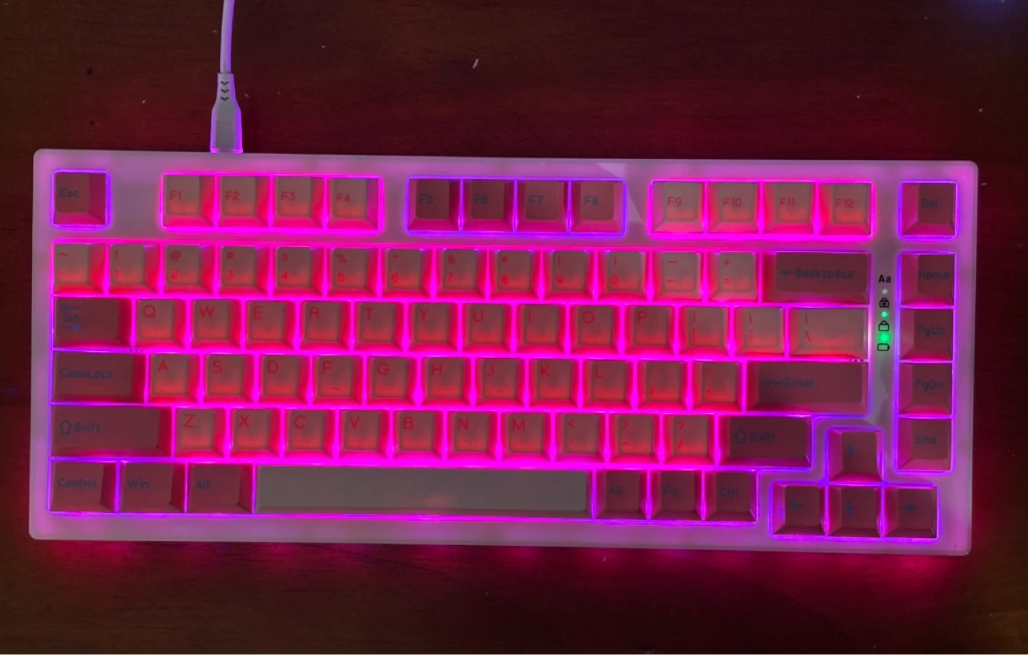 ユンズイ(YUNZII)YZ75のメカニカルキーボードです。 【情報】 ・赤軸スイッチ(Gateron G Pro Red)で打ち心地なめらか ・Bluetooth/2.4GHz/USB Type-C対応でワイヤレスも有線もOK ・RGBライト付きで、好みに合わせてカスタマイズ可能 ・USBケーブル付き 【状態】 使用感少なめで、全体的にきれいです。 ゲーマーの方にもおすすめです♪ 中古品であることご了承ください。 🎮 他にもゲーミングマウスやモニター、PCなども出品しています。 まとめてご購入いただける場合は、特別なお値引きをさせていただきます!