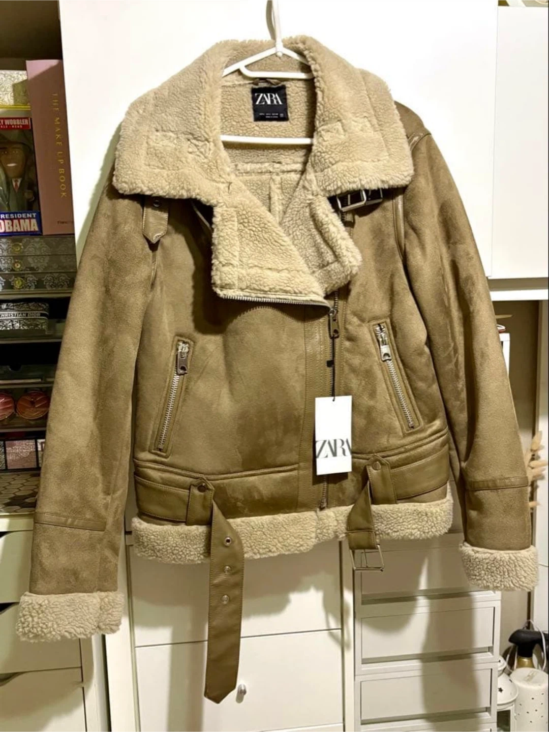 ZARA ダブルサイド仕様ジャケット お色・ベージュ サイズ・L 【新品・未着用・タグ付き】 【素材】 主要生地 100% ポリエステル コーティング 100% ポリウレタン 装飾部分 98% ポリエステル,2% コットン 裏地 100% ポリ エステル ■ただいまAmeri・herliptoのお洋服を中心にいろんなブランドのお洋服も沢山持ってまして洋服諸々整理しております。 お洋服が大好きなのですが身体が弱くなかなか外出しないので殆ど新品・未着用・タグ付きです。もちろん正規品です。