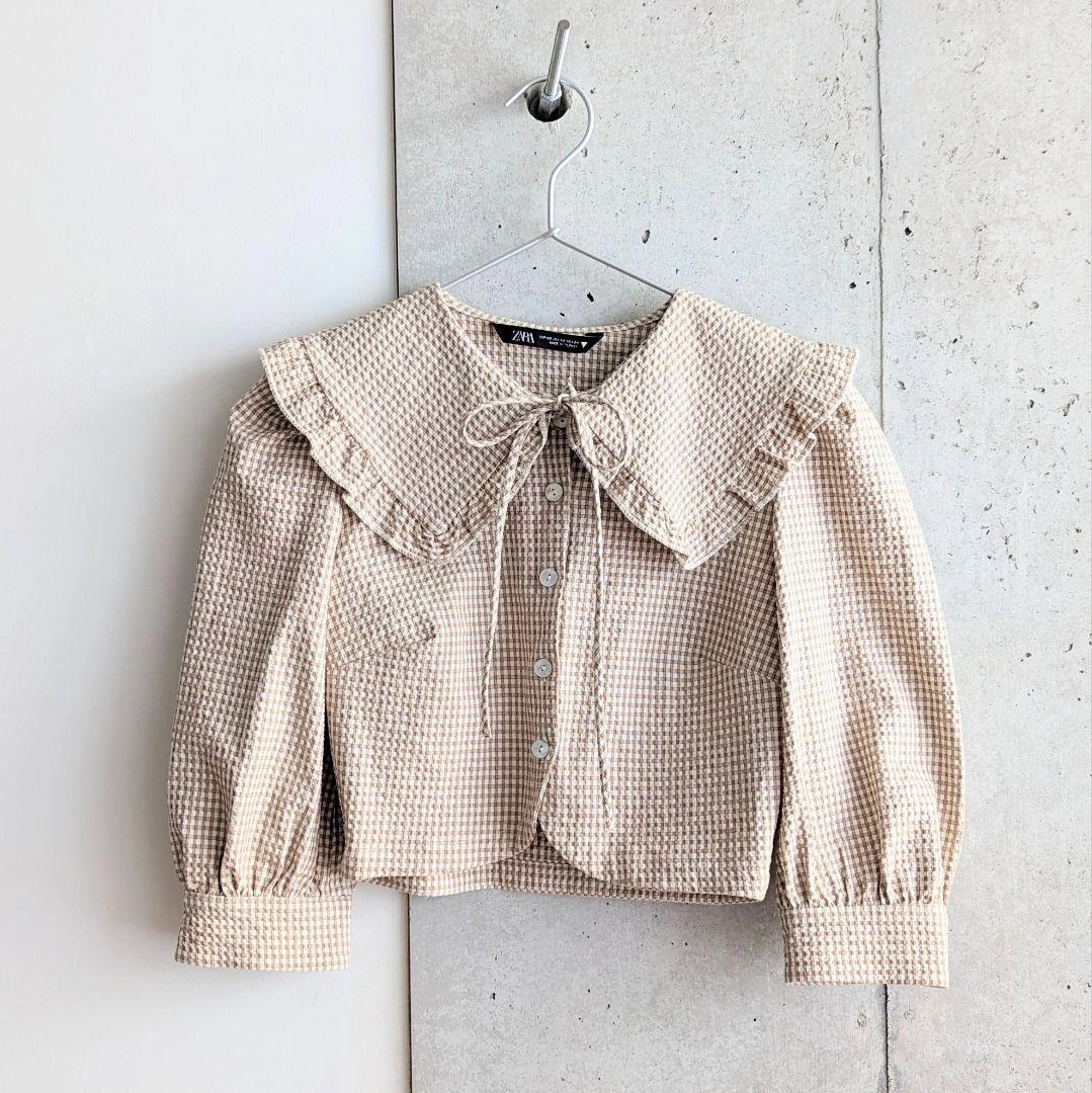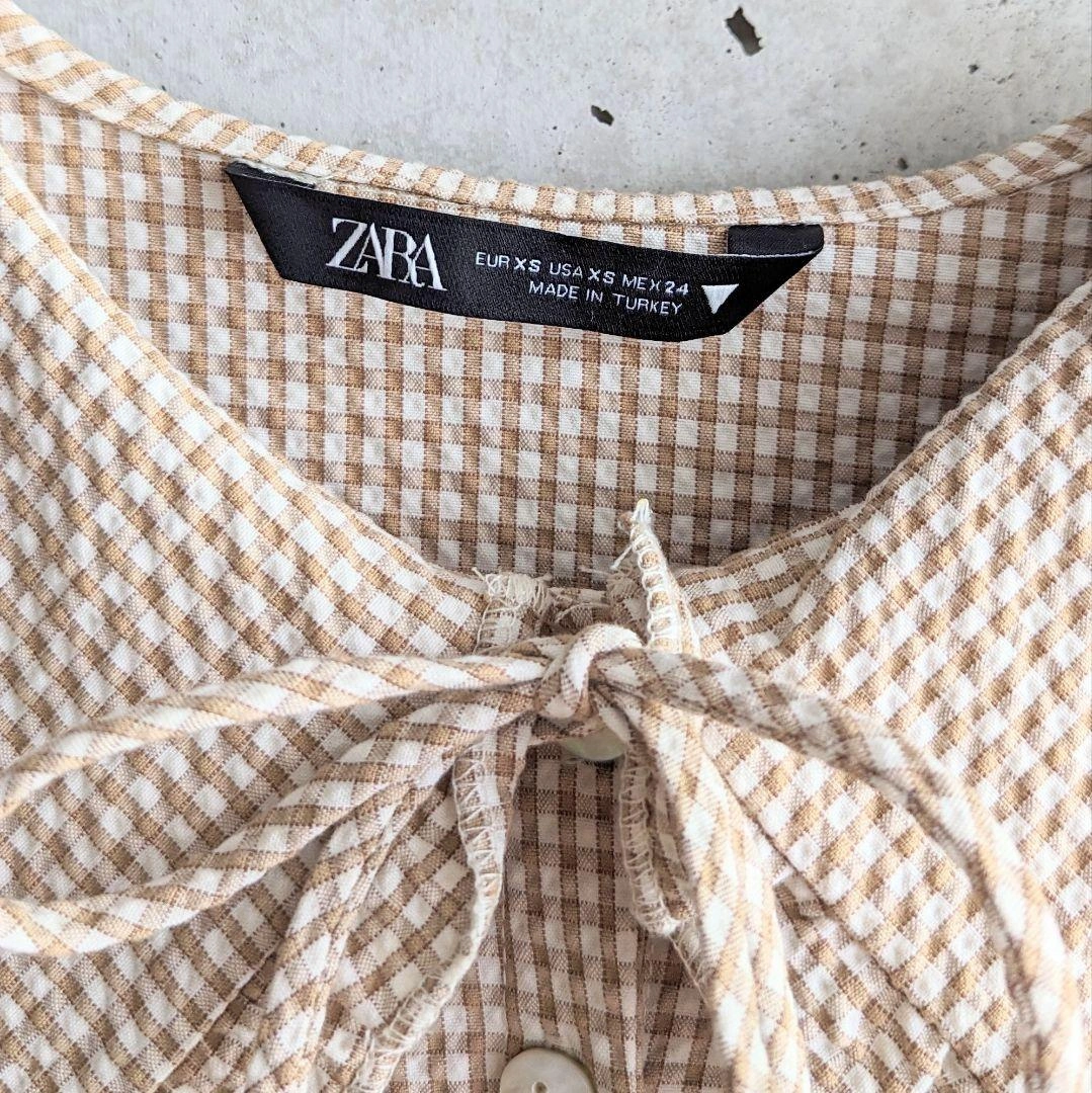 ZARA テクスチャード チェック トップス XSサイズ ベージュ