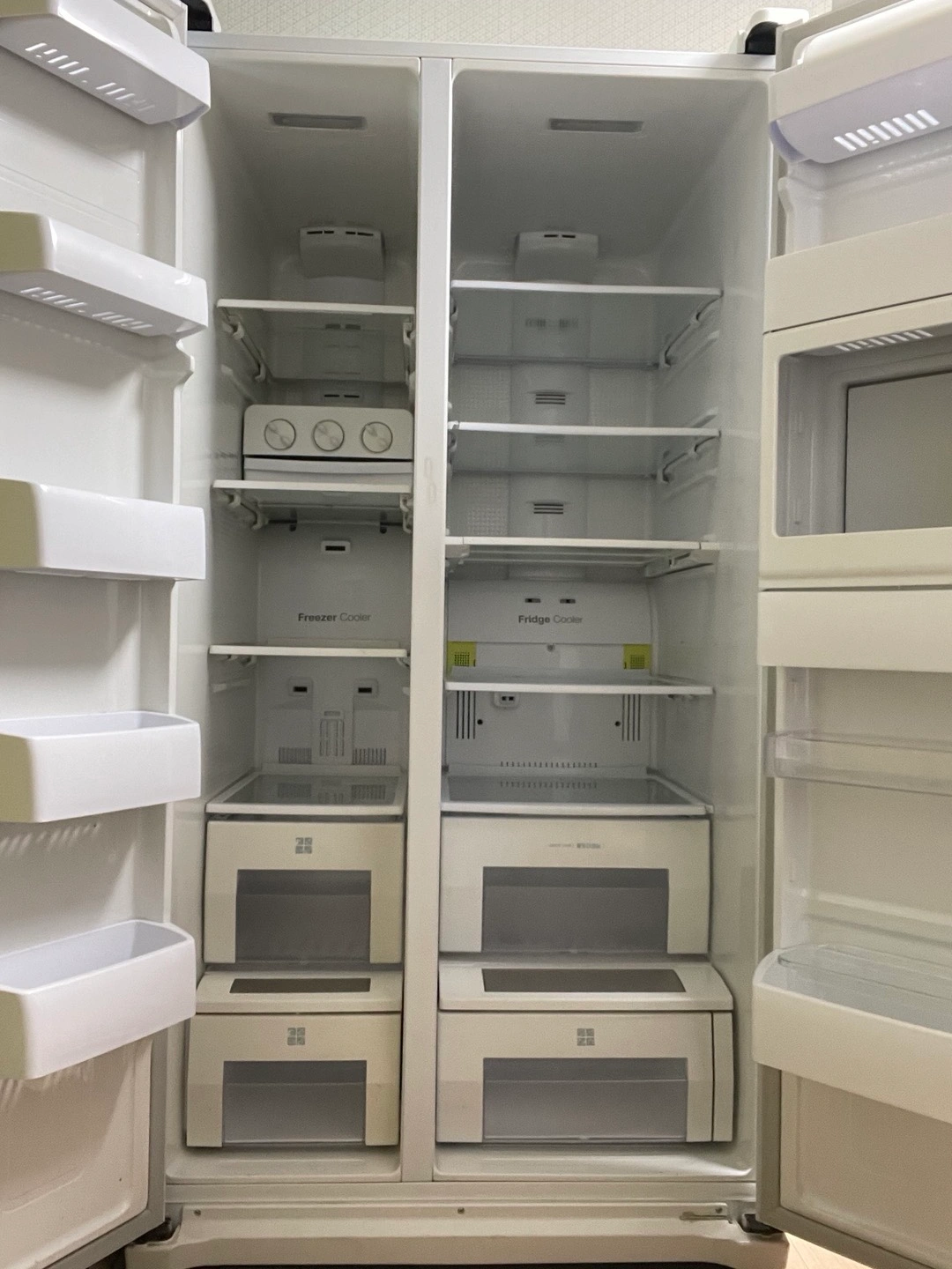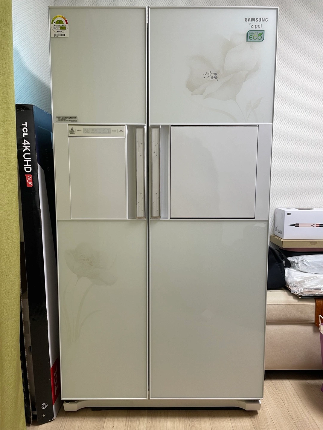 삼성 지펠 냉장고 판매합니다 모델명 : SRT75HWAGE 용량 : 737L 에너지 소비 효율 : 1등급 가로 915cm 높이 177cm 깊이 84cm 홈바가 있어 편리하고 10년정도 됐지만 거의 사용안해서 상태는 아주 깨끗하고 설명서도 있습니다. 독립냉각, 수분케어, 솔라파워 탈취, LED 디스플레이, 빅야채실, 웰빙 야채실 기능도 있습니다. 다만 냉장실 선반 한쪽 구석이 조금 깨졌고 직접 가져가 주셔야 해요. 날짜는 맞춰 드릴 수 있고 서초동입니다.