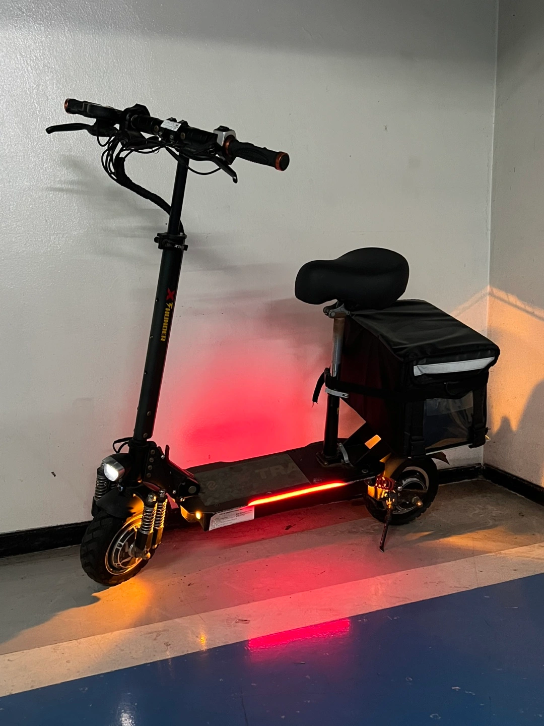 ⭐️엑스트랙 썬더 전동킥보드 판매합니다⭐️ 1️⃣듀얼모터 48V 15ah이구요. 2️⃣라이트,LED,크락션 다 잘 되고 3️⃣듀얼 모드버튼있어서 언덕은 시원하게 올라갑니다. (LED버튼 옆에 빨간버튼이 듀얼모드 버튼입니다) 4️⃣2500km정도 운행하였지만 사용기간에비해 깔끔하게 탔어요. 5️⃣뒤에 짐을 싣고 다닐수있는 가방도 달아놓아서 조그마한 가방정도나 충전기,하이바를 넣을수있습니다. 배터리도 짱짱하고 오셔서 타보시고 구매하셔도됩니다 . +뒤에 달린가방,충전기,하이바까지 다 드립니다. ✅뒷바퀴 새로 갈아놓고 한번도 안탔습니다 ❌중고거래 특성상 단순변심으로인해 환불은 불가합니다.❌