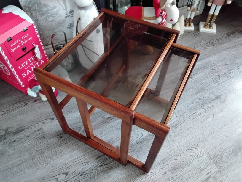 1 reviewPlease read carefully before buying I will include for free the retro Danish ? Wooden table lamp for free only if the full asking price is paid 2 mid century smoked glass side tables Come and take a look with no obligation Cash on collection only Birmingham b26 No postage no returns no other items included