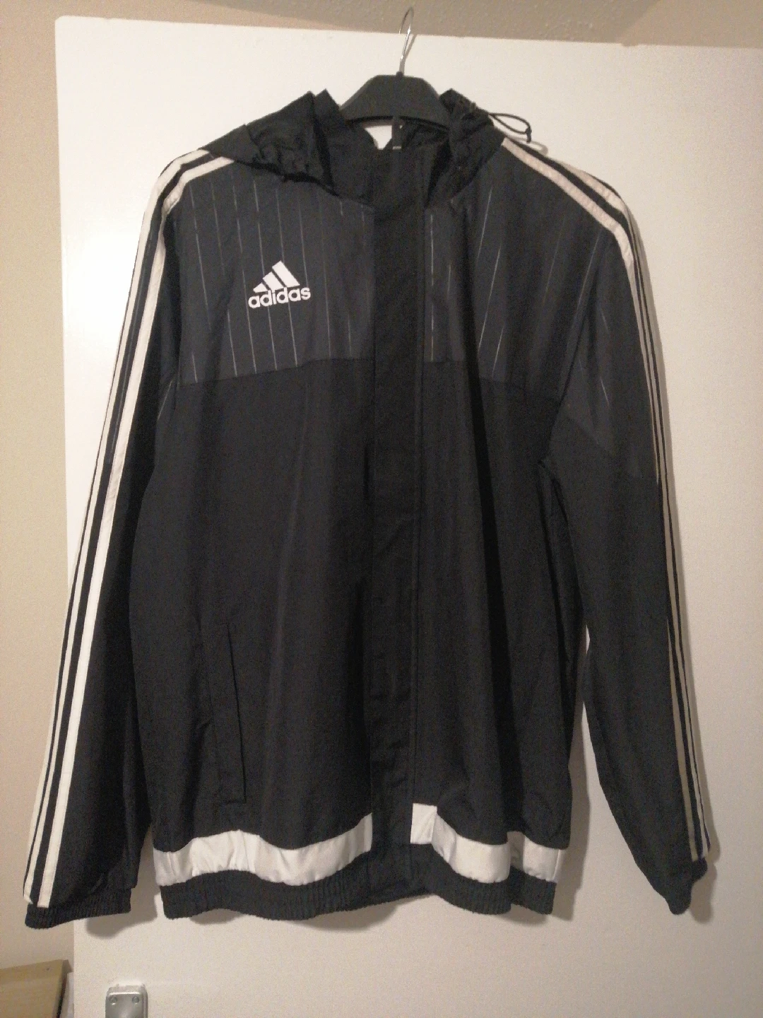 0 reviewsAdidas black jacket with the iconic three stripes on the sleeves. It's in great condition and perfect for everyday wear