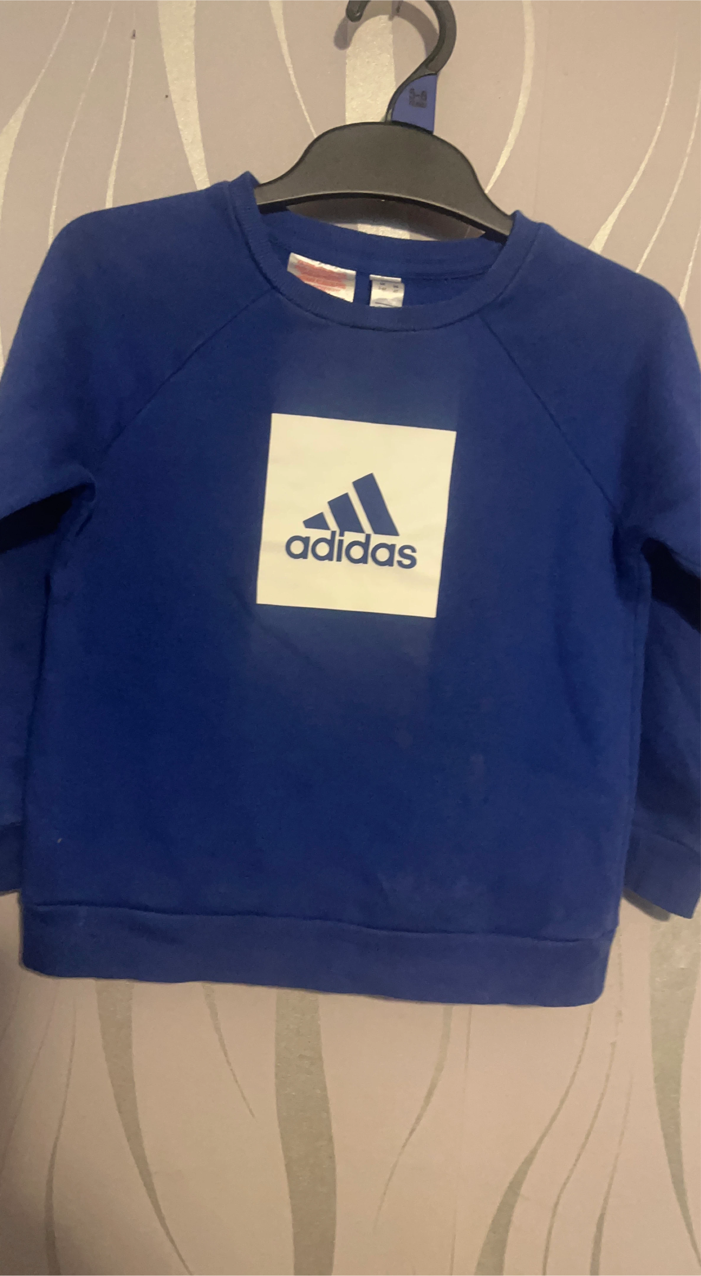 2 reviewsAdidas blue jumper, in size 5-6 years. It's in good condition and has a large Adidas logo on the front