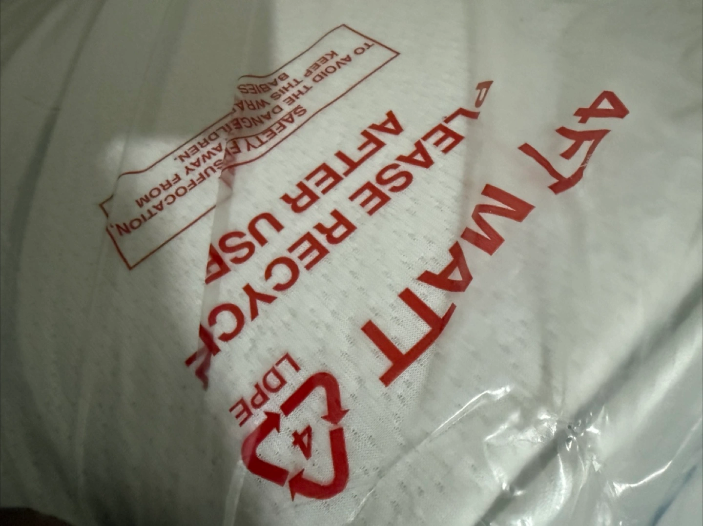 4 reviewsA mattress with the label 'Aft Matt' is available. The packaging indicates that it is made of LDPE and encourages recycling after use. Safety warnings are present to avoid danger to children and suffocation
